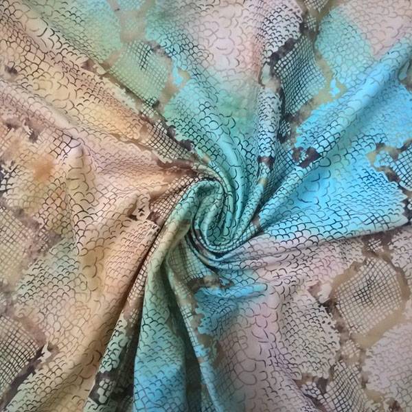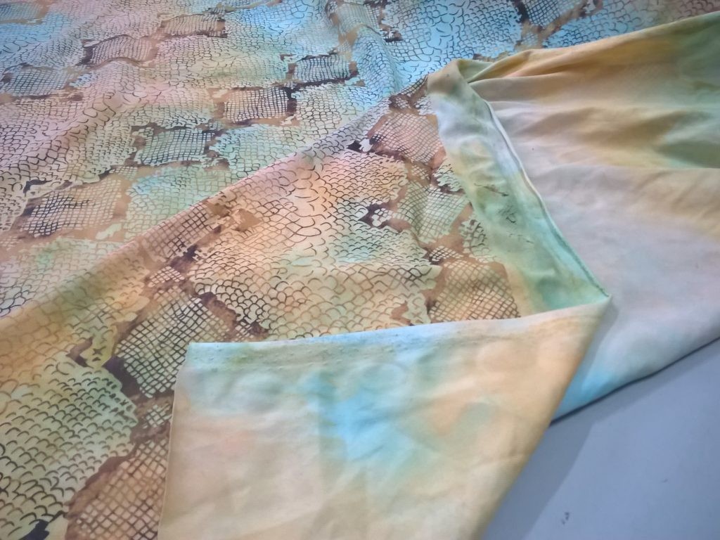 Tessuto per abiti ad effetto serpente sfumato – giallo e azzurro
