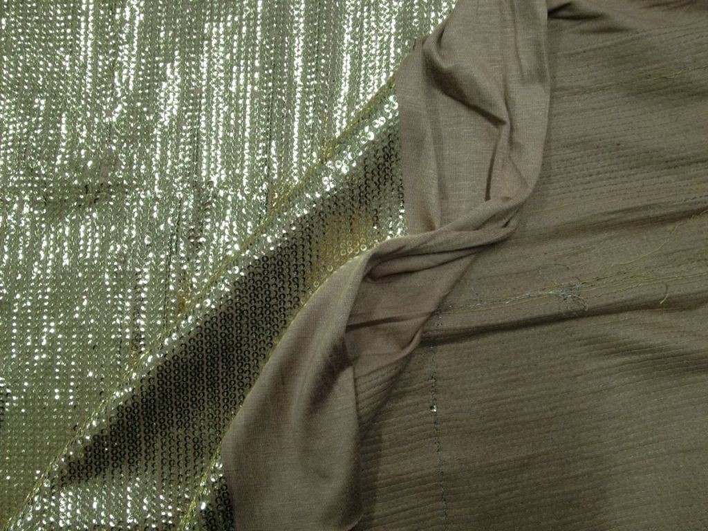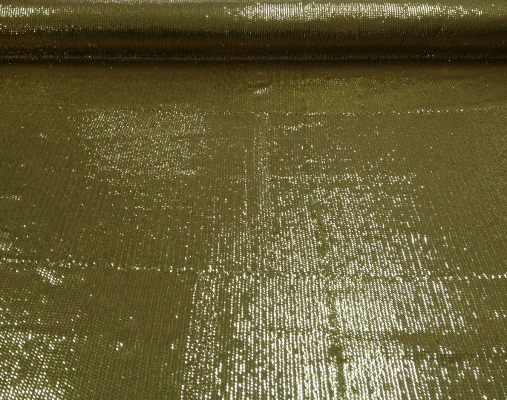 Tessuto per abbigliamento leggermente elasticizzato composto da paillettes color oro