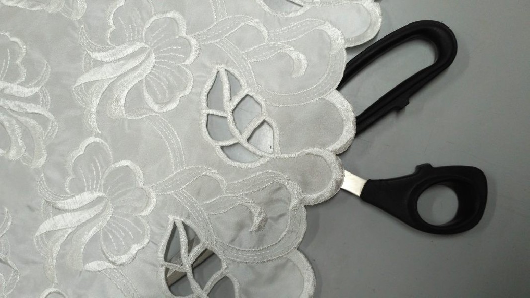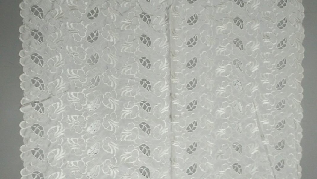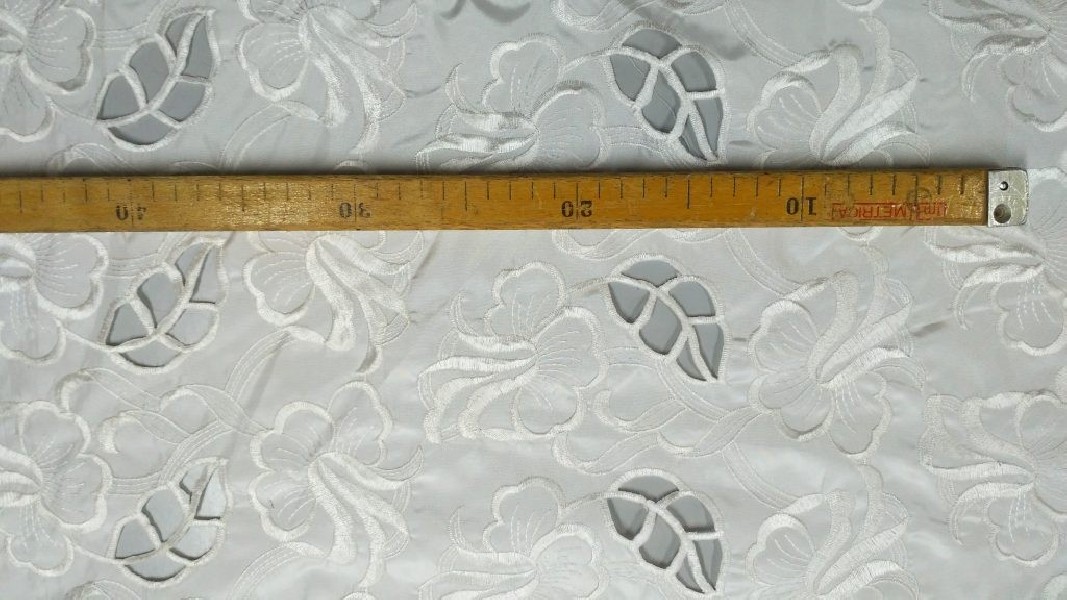 Tessuto in pizzo Taffetà ricamato a fantasia floreale semitrasparente in colore bianco
