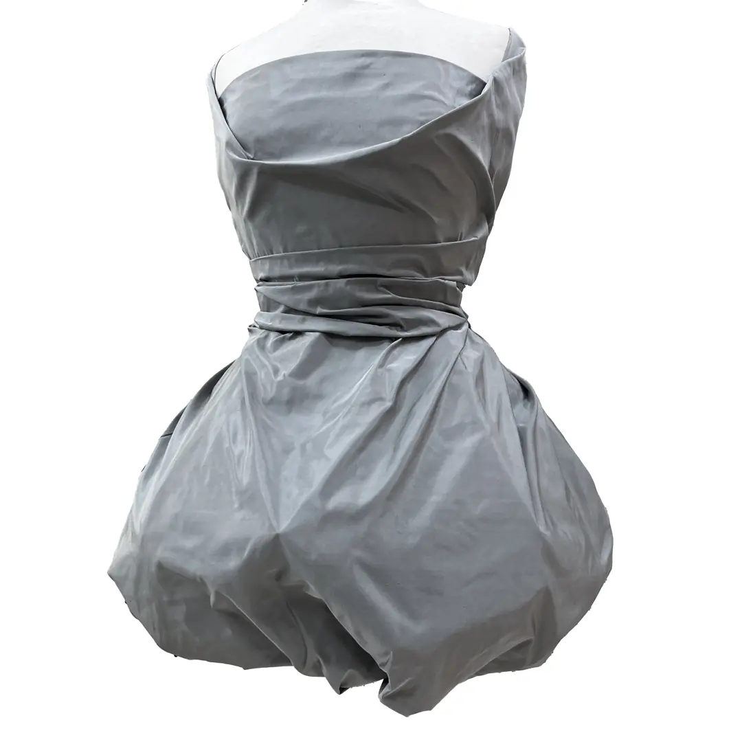 Questa stoffa grigia chiara è ideale per la realizzazione di abiti, camicie, bluse, foulard e accessori, donando un tocco di raffinatezza a ogni outfit.