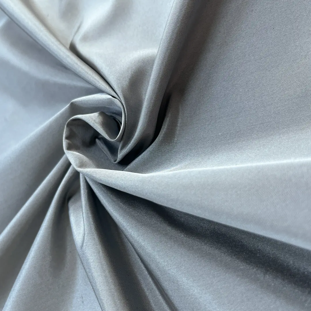 Il tessuto di pura seta grigio pietra è un materiale nobile, apprezzato per la sua eccezionale morbidezza e leggerezza.