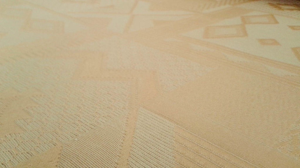 Il motivo geometrico che decora il tessuto è classico per eccellenza: simmetrico, ripetitivo, e di gusto sobrio.