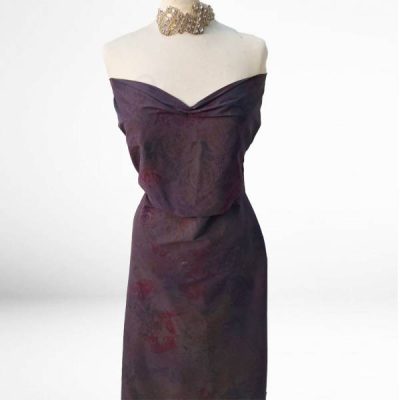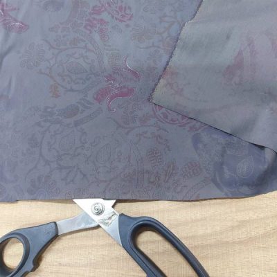 Splendido tessuto in cotone ideale per ogni tipo di abbigliamento, si presenta con una bellissima fantasia in stile barocco con sfumature viola grazie ai suoi disegni rende il tessuto elegante.