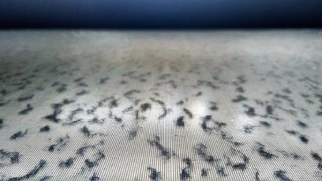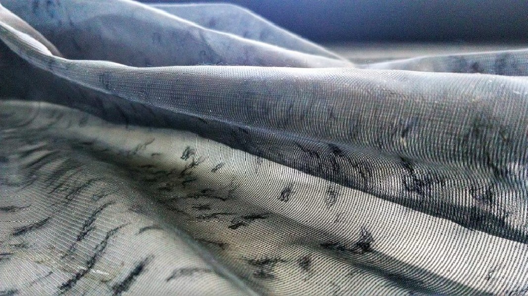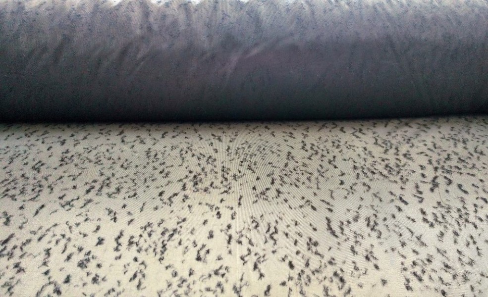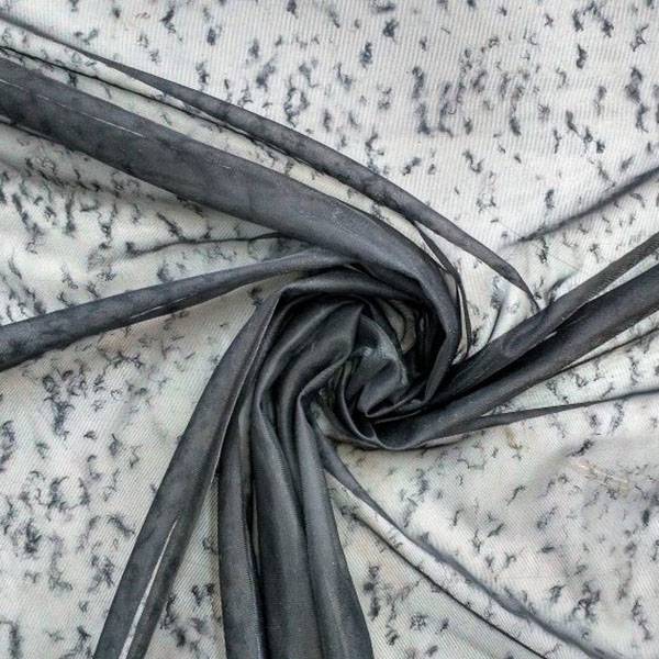 Tessuto in velo nero floccato, leggerissimo e trasparente