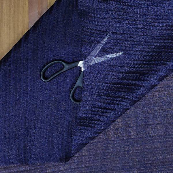 Tessuto voile leggero e trasparente ma tempo stesso resistente. Colore viola con lavorazione raffinata in due sensi opposti che crano un elegante effetto a righe.