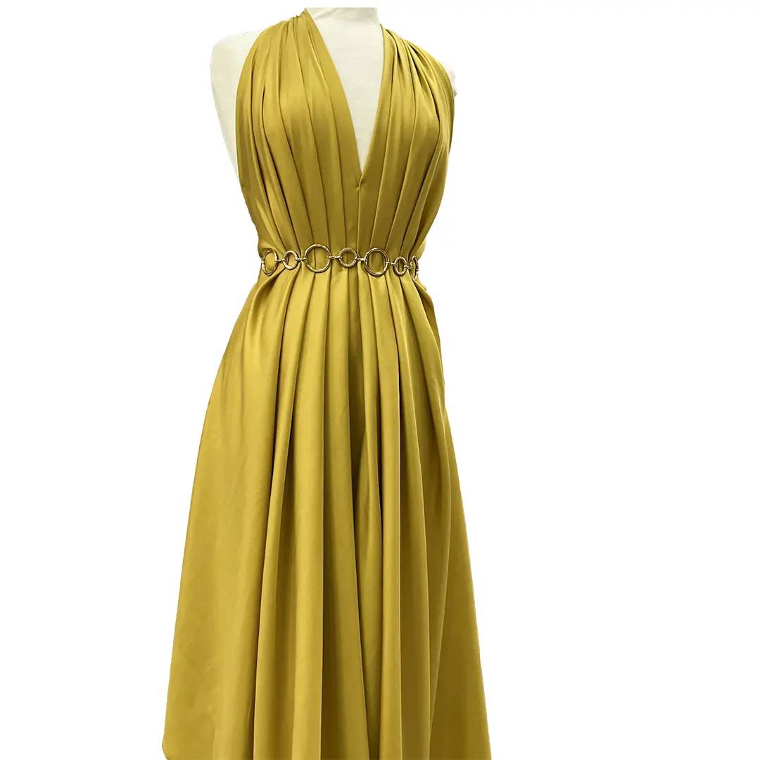 La seta pura, di per sé, è sinonimo di lusso. La sua naturale brillantezza amplifica la profondità del colore, che in questo caso è un giallo senape con una delicata sfumatura tendente al verdino.