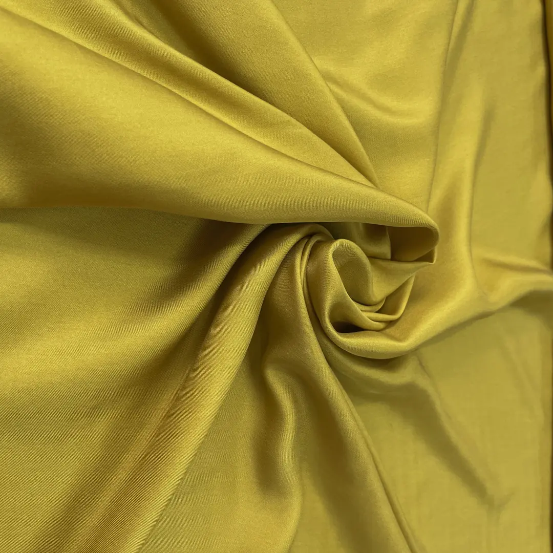 Tessuto di Twill in pura seta made in italy color senape verdastro