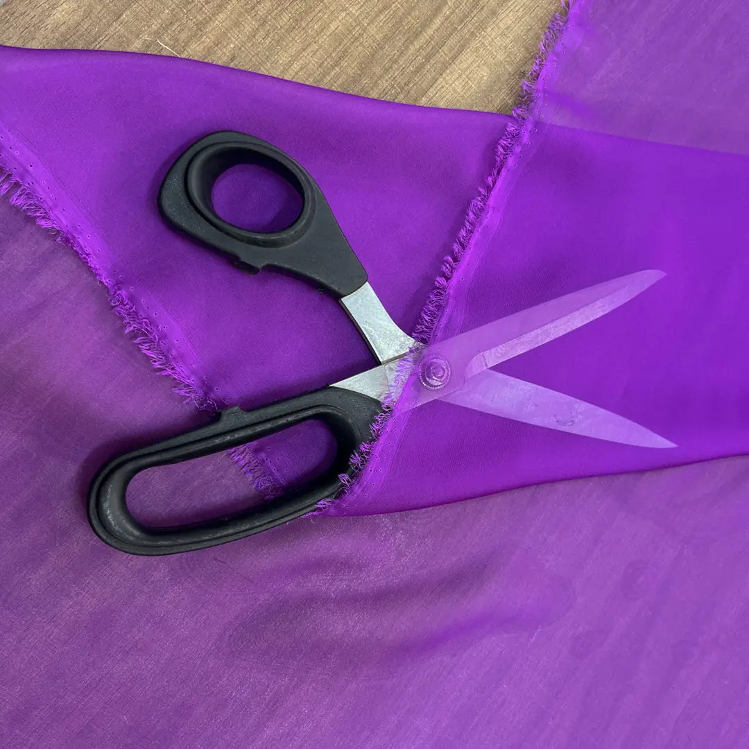 Il Voile in 100% poliestere color viola orchidea è un tessuto leggero, trasparente e raffinato, caratterizzato da una texture delicata e una fluidità che lo rende ideale per creazioni eleganti e sofisticate.