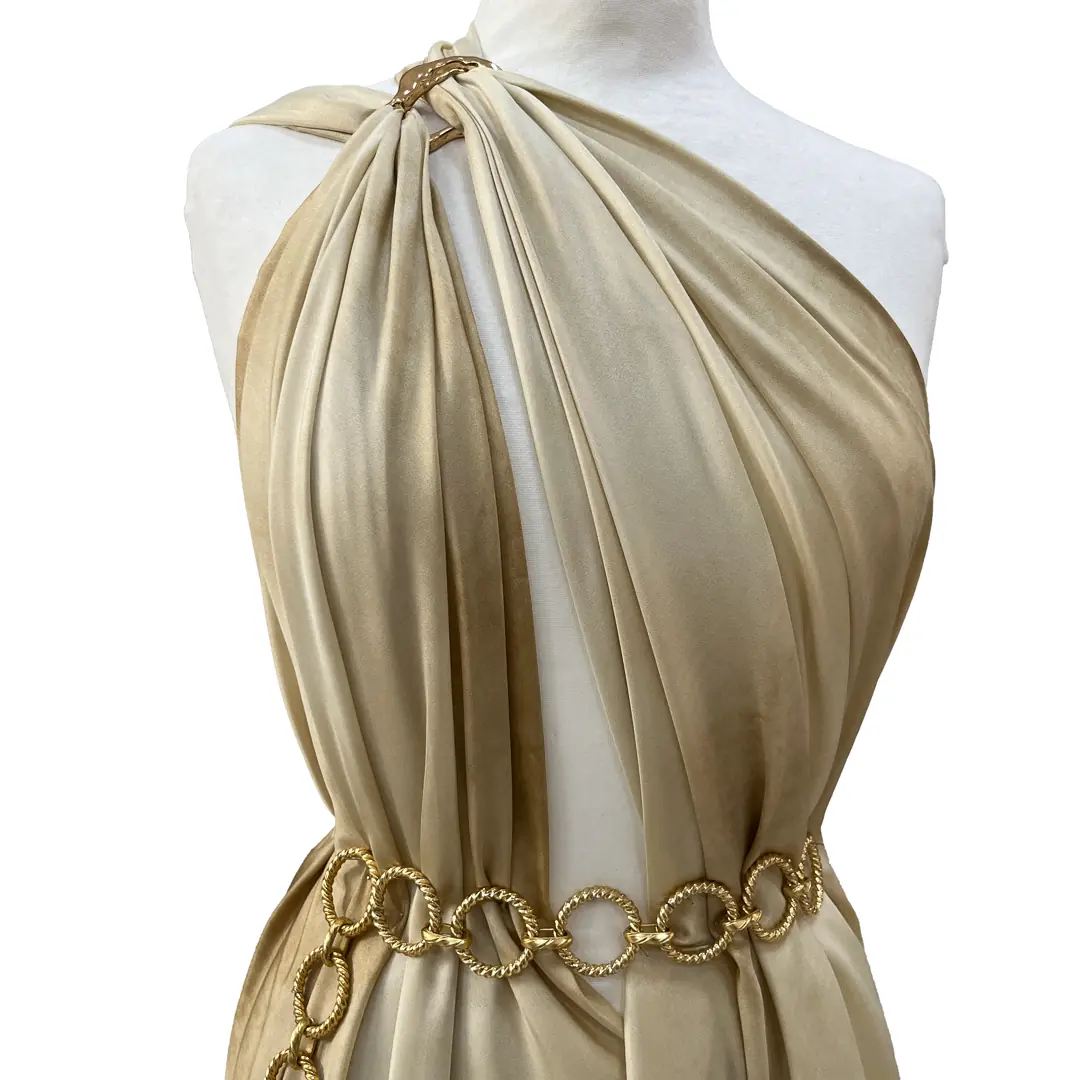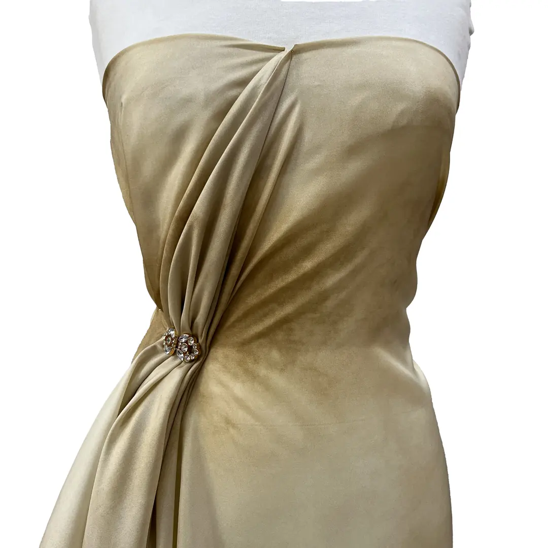 Tessuto in Voile di pura seta italiana sfumata color Sabbia Dorato
