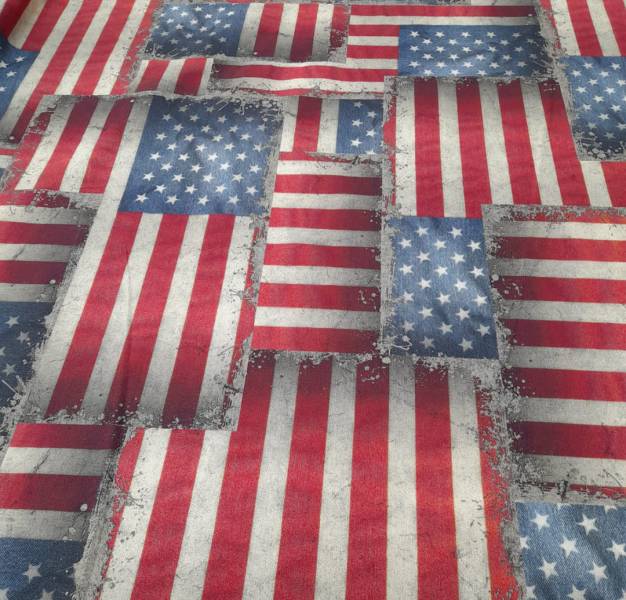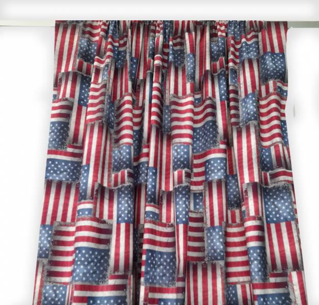 Il motivo decorativo riproduce il design iconico della bandiera americana, con le caratteristiche stelle bianche su sfondo blu e le strisce alternate rosse e bianche. La stampa può variare nello stile, spaziando da colori vividi e brillanti per un effetto moderno a tonalità più desaturate o sbiadite per un look vintage o shabby chic. La qualità della stampa, solitamente realizzata con tecnologie digitali o serigrafiche, garantisce una resa duratura e dettagli nitidi, resistendo bene all’uso quotidiano e ai lavaggi.