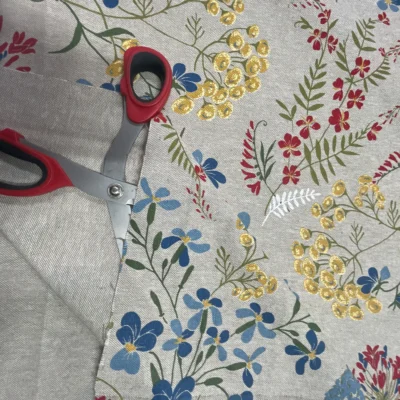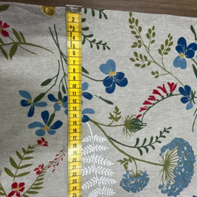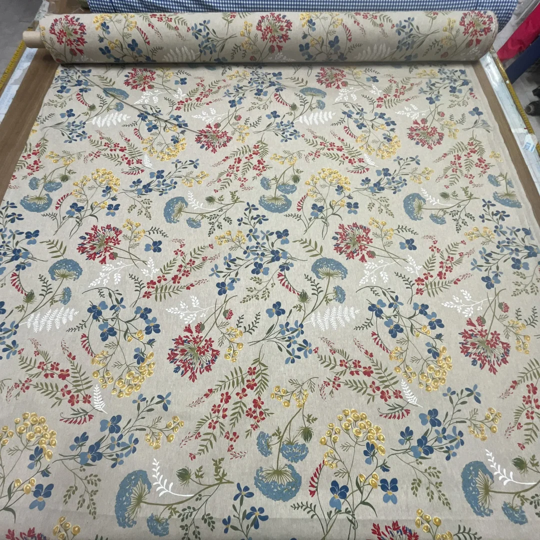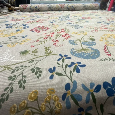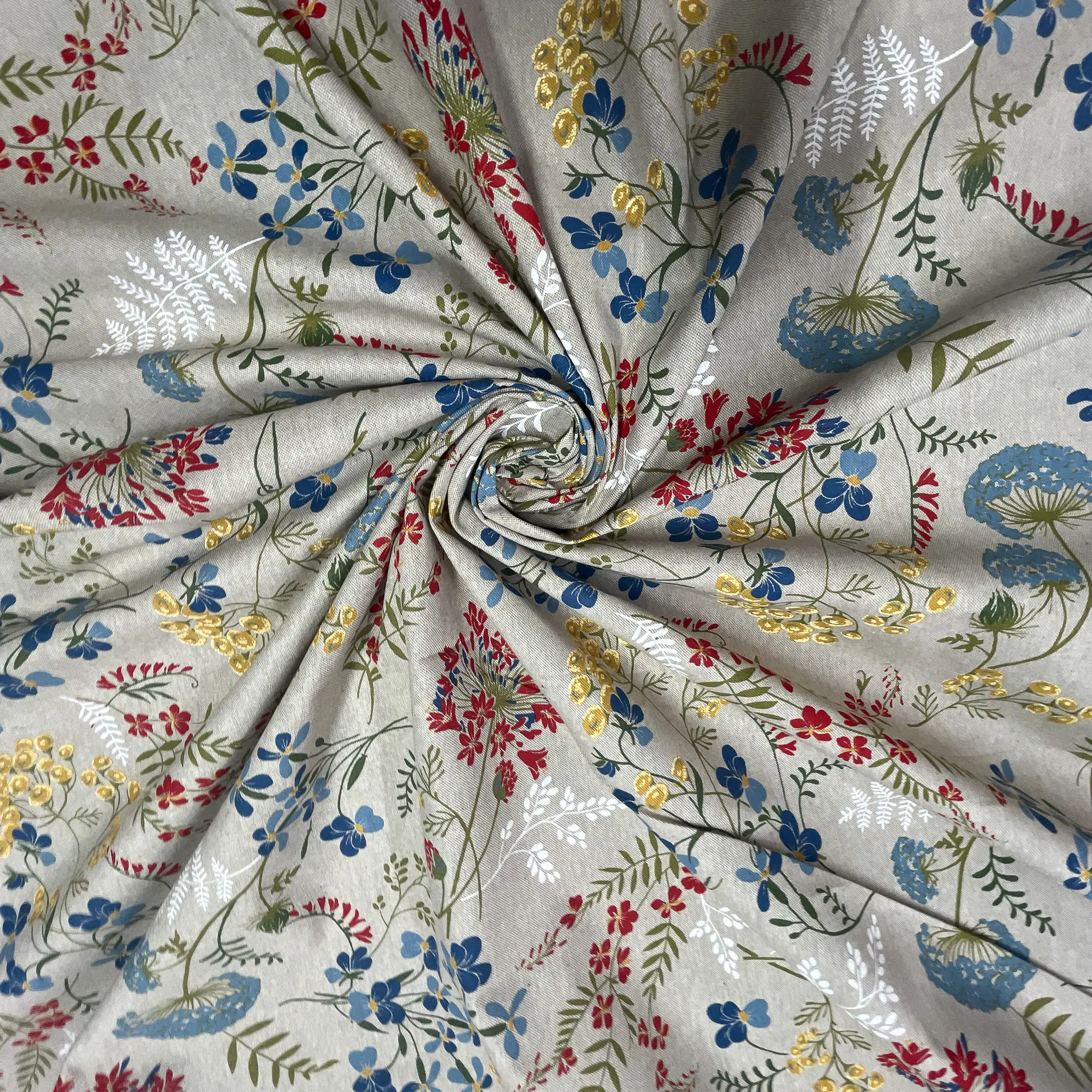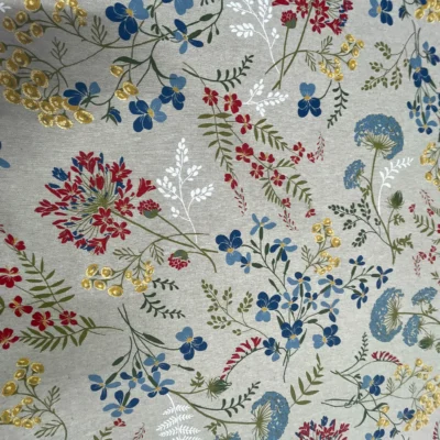 Tessuto d’arredo rustico floreale multicolore su base grezza