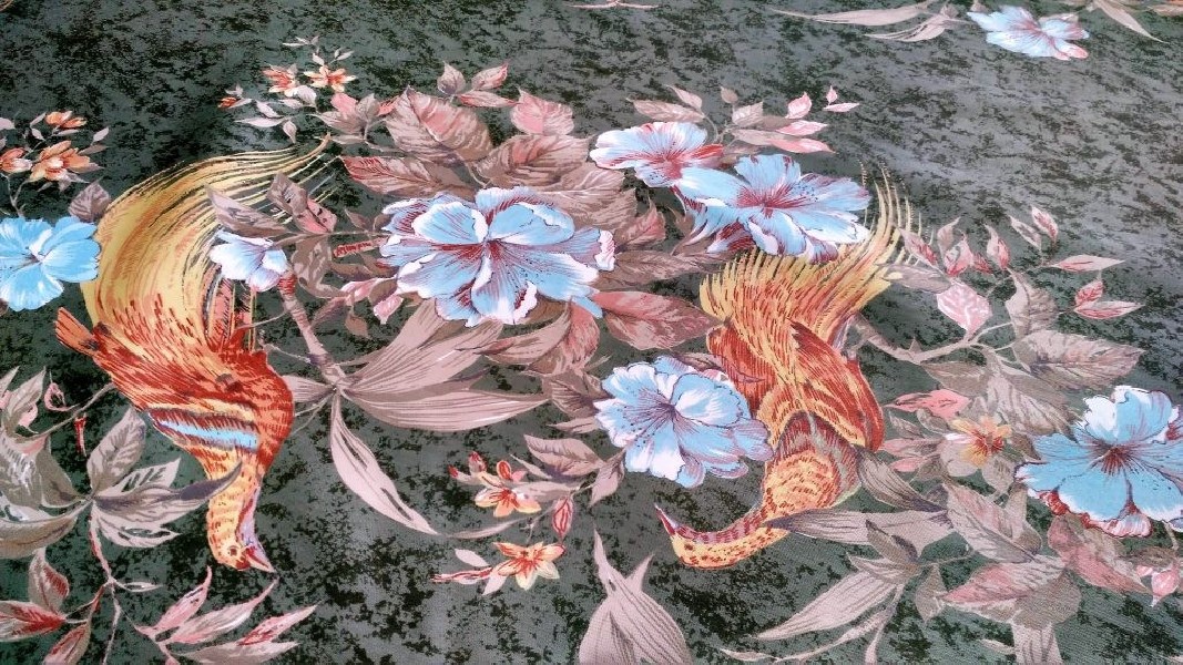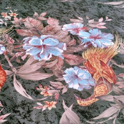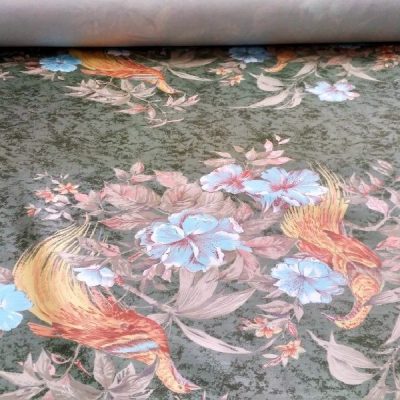 Tessuto arredo in stile rococò fantasia a fiori e volatili