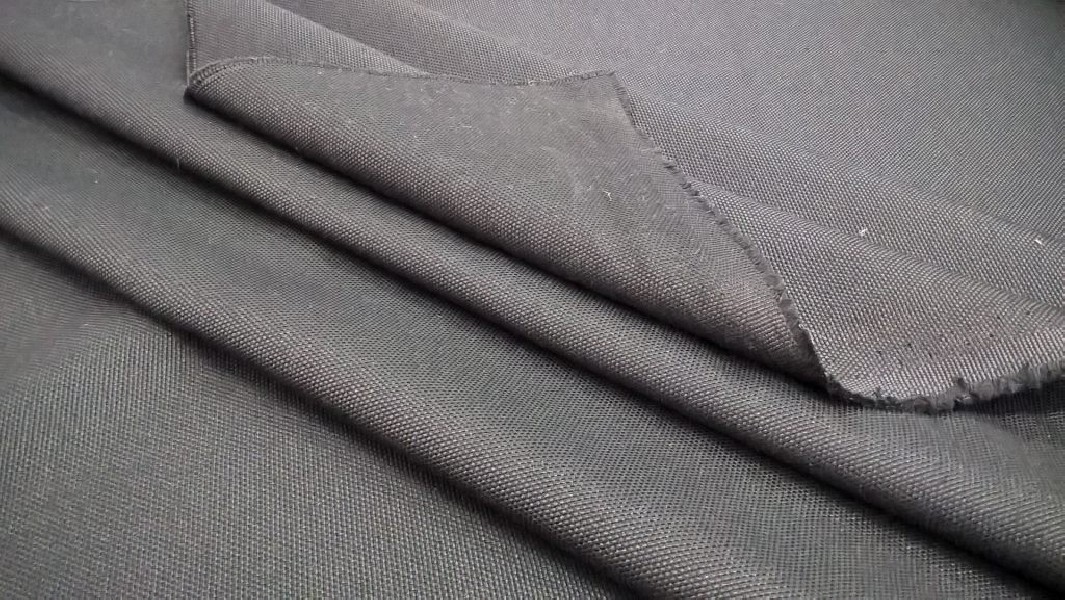 Tessuto in Panama Nero con tramatura a vista di qualità superiore.