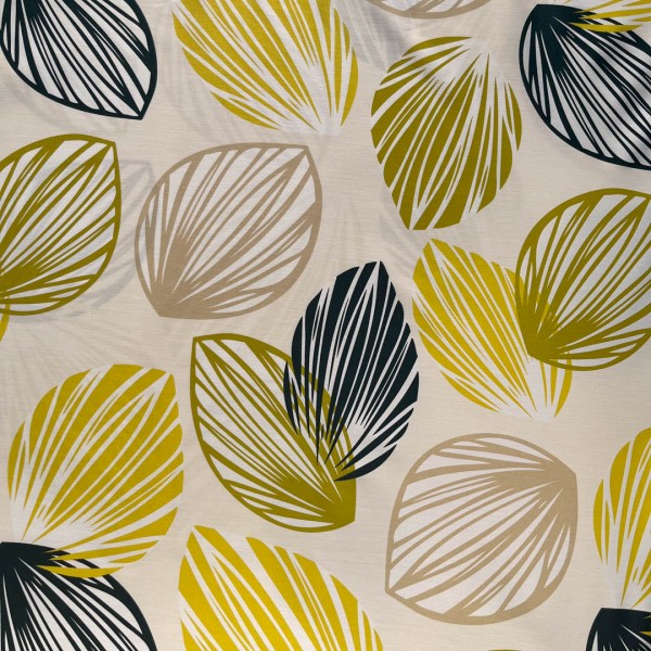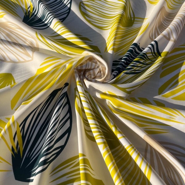Questo tessuto d’arredo con foglie dorate su sfondo panna, in altezza 280 cm, è pensato per chi vuole dare luminosità e carattere alla zona giorno senza appesantire l’ambiente. La fantasia a foglie stilizzate nei toni dell’oro e dell’ocra, distribuite in modo armonioso sul fondo chiaro, crea un effetto decorativo elegante ma discreto, perfetto per salotti, camere da letto e open space moderni.