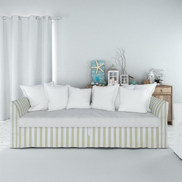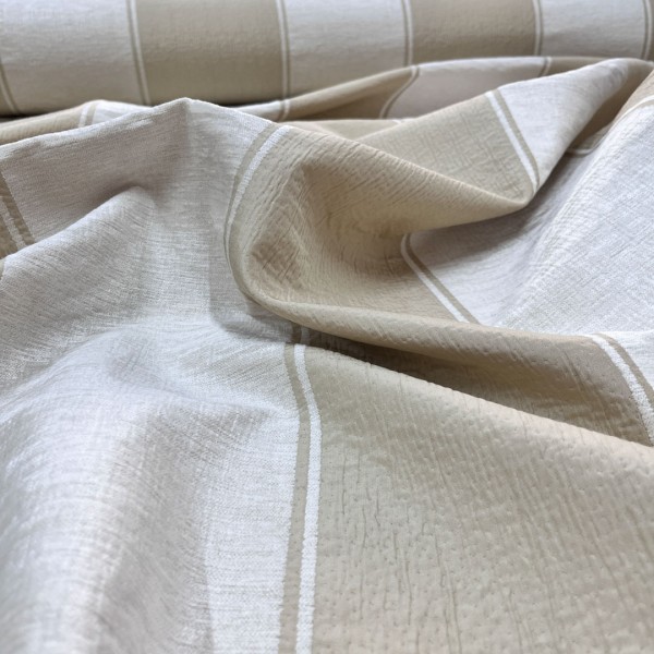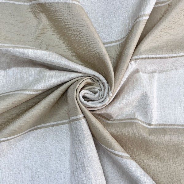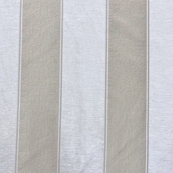 Tessuto da arredamento premium con righe bicolore tortora e bianco argentato