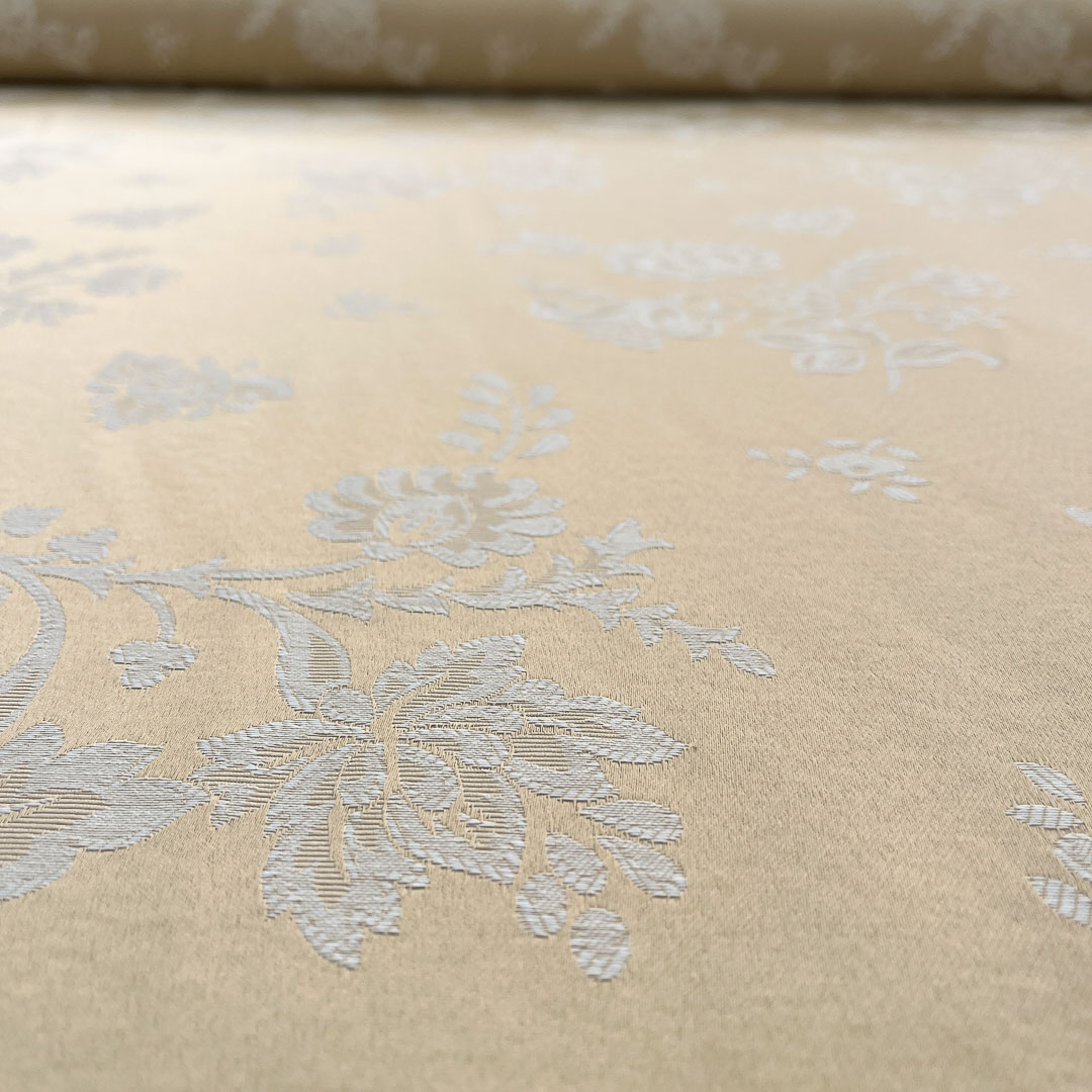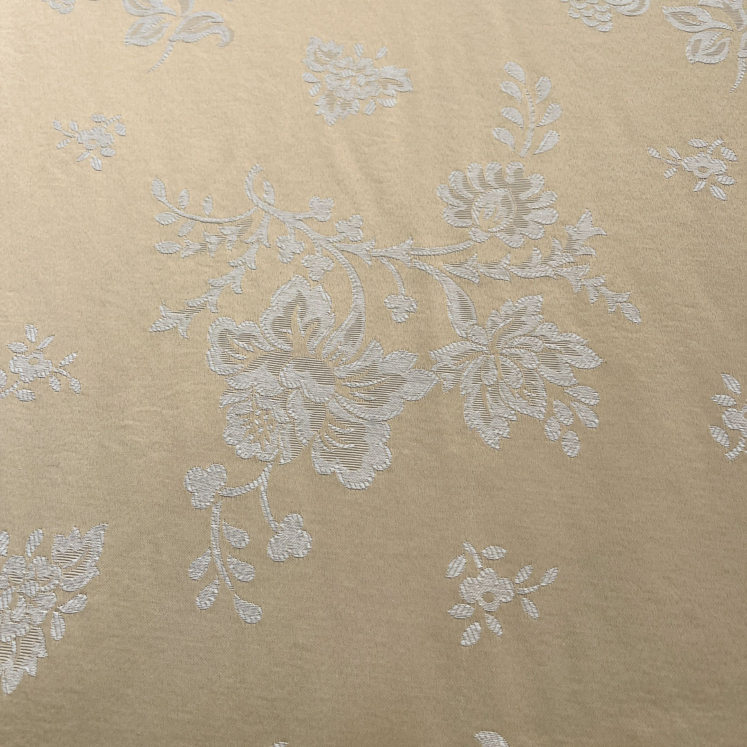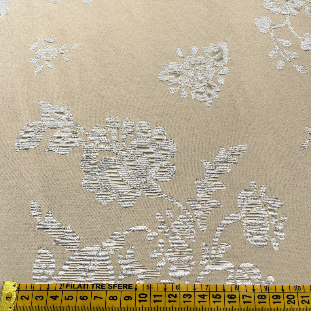 Sia che venga utilizzato per creare un ambiente classico e tradizionale o per aggiungere un tocco di eleganza a uno spazio moderno, questo tessuto jacquard in puro cotone con fiori bianchi su base beige perlato si distingue per la sua bellezza senza tempo e la sua versatilità decorativa.
