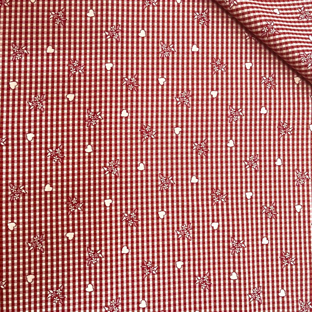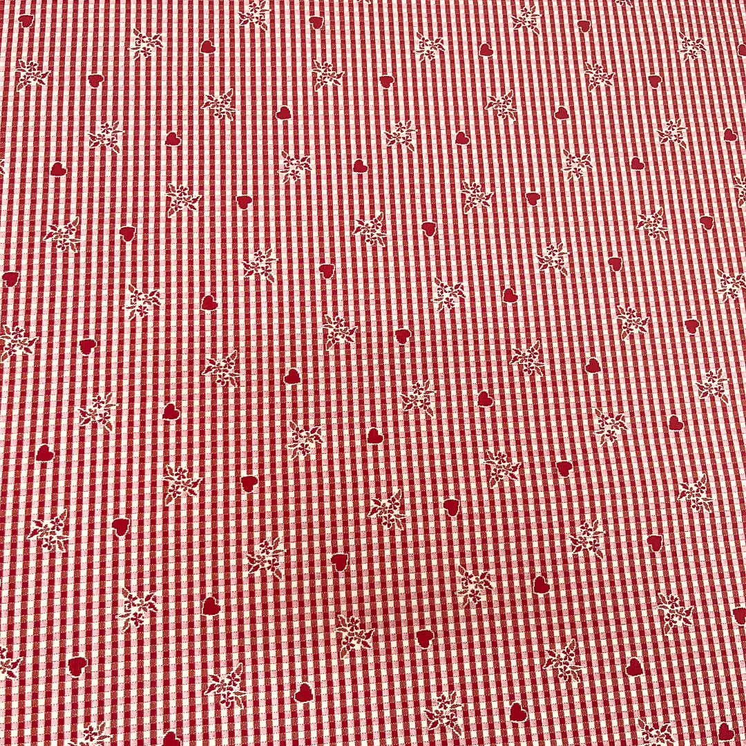 Le faccia chiara presenta una baserossa chiaro con fantasie di quori rossi , mentre la faccia scura presenta una base rossa più scurocon fantasie quori bianche tendenti al panna.