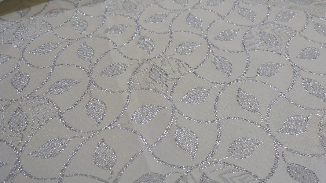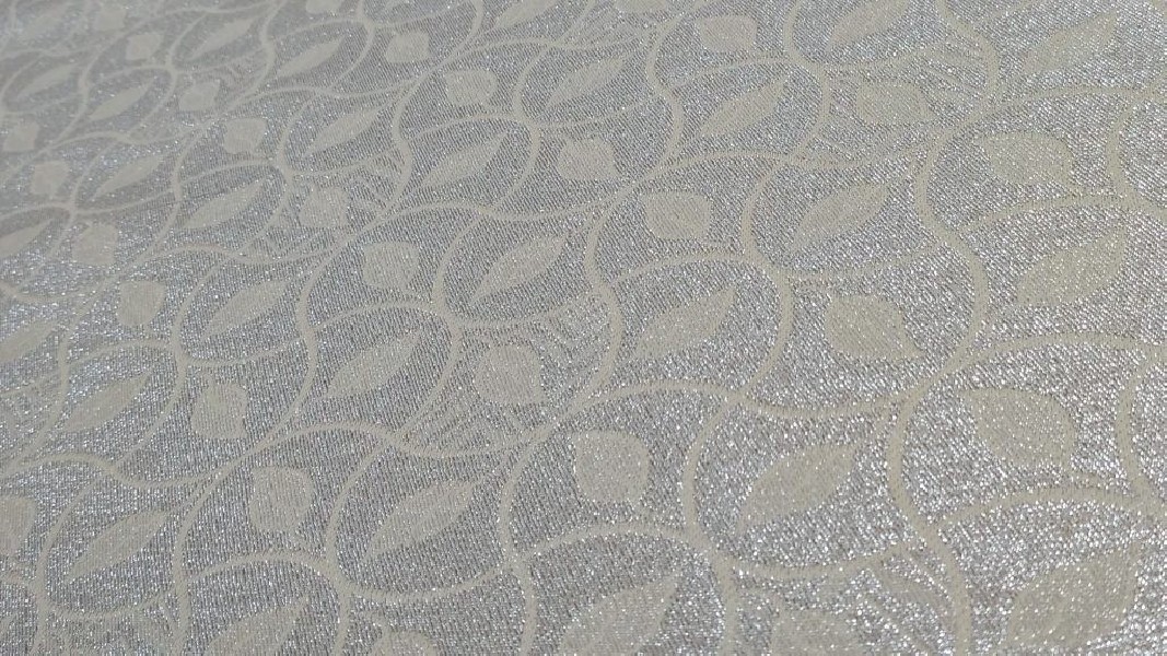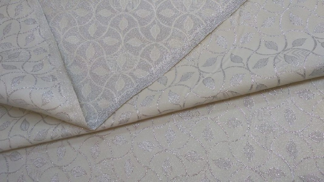 Tessuto double face motivo damascato a foglie – panna e argento