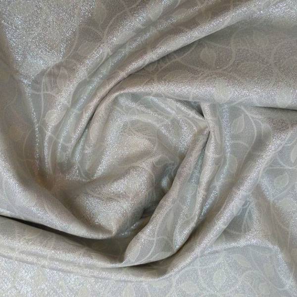 Tessuto argentato double-face, elegante e romantico, disegno argento su panna.