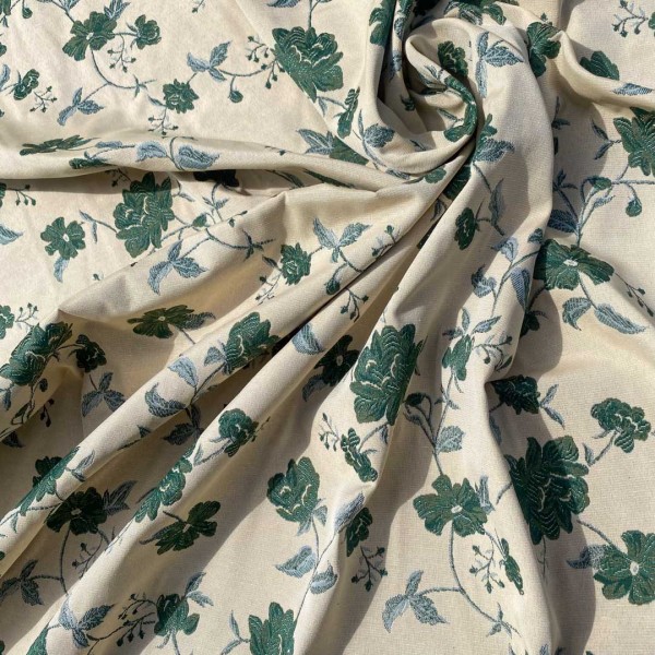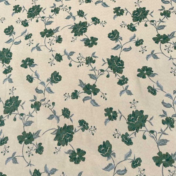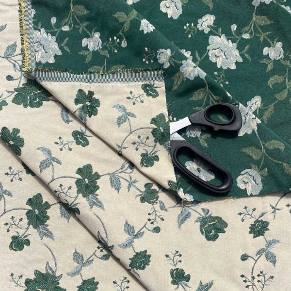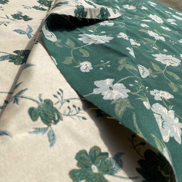 Tessuto double face Made in Italy fantasie floreali verde scuro su sfondo panna