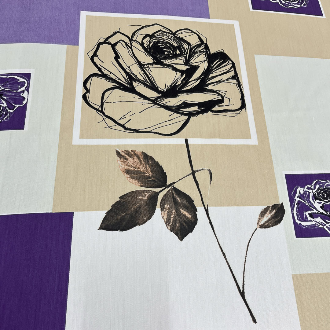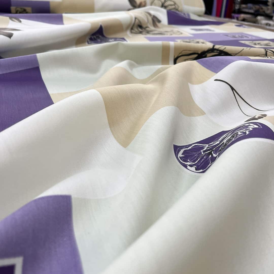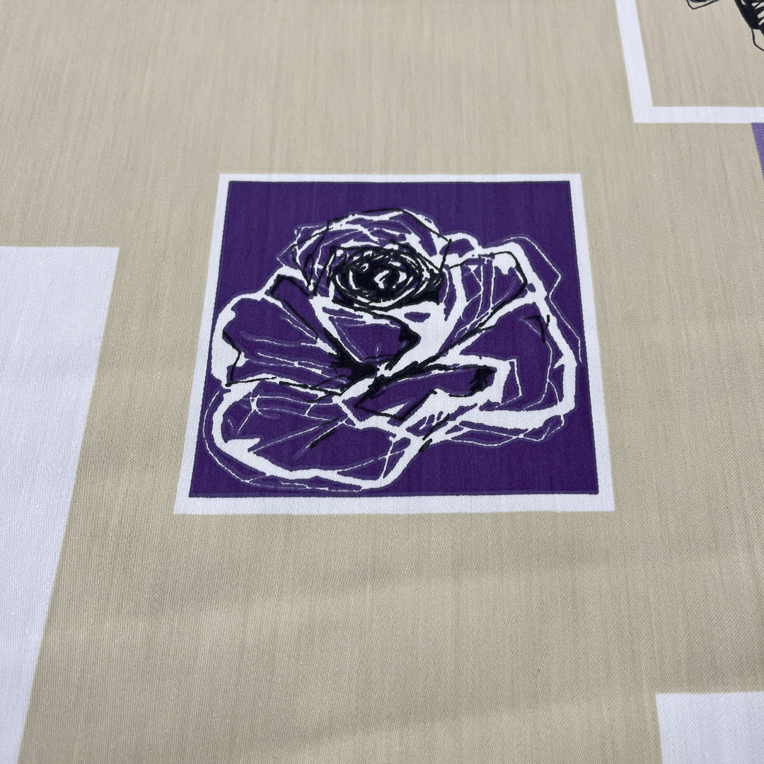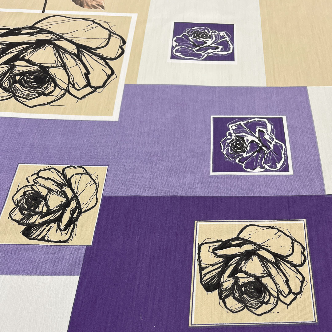 Tessuto con rose disegnate su base geometrica asimmetrica