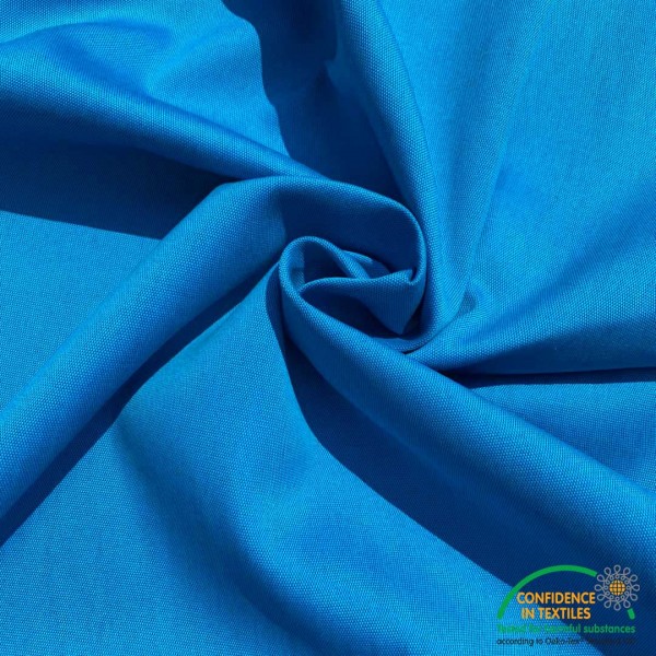 Tessuto certificato secondo lo standard Oeko-Tex 100©, certificazione che attesta la piena ecocompatibilita ambientale del processo di produzione e l’assenza di sostanza nocive.