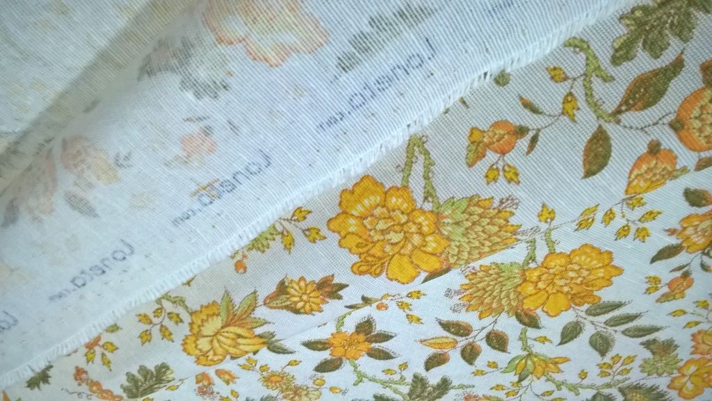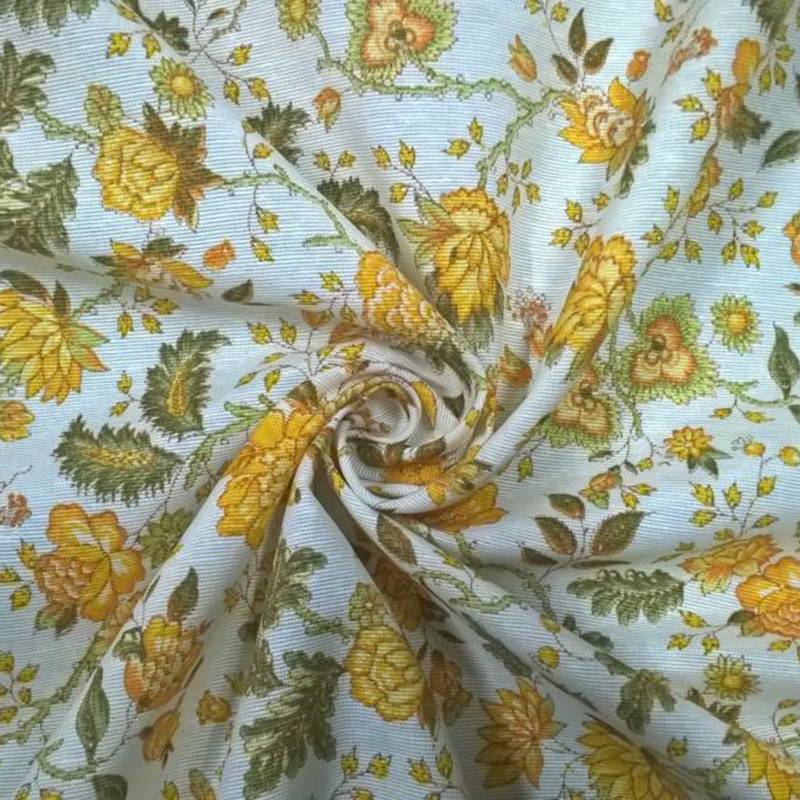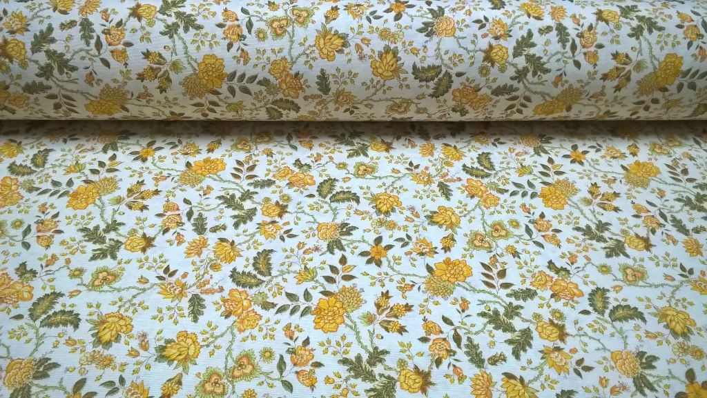 Tessuto in Misto Cotone a fantasia con fiori gialli ad effetto vintage