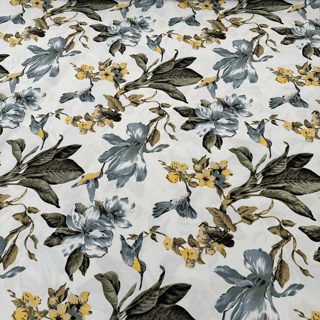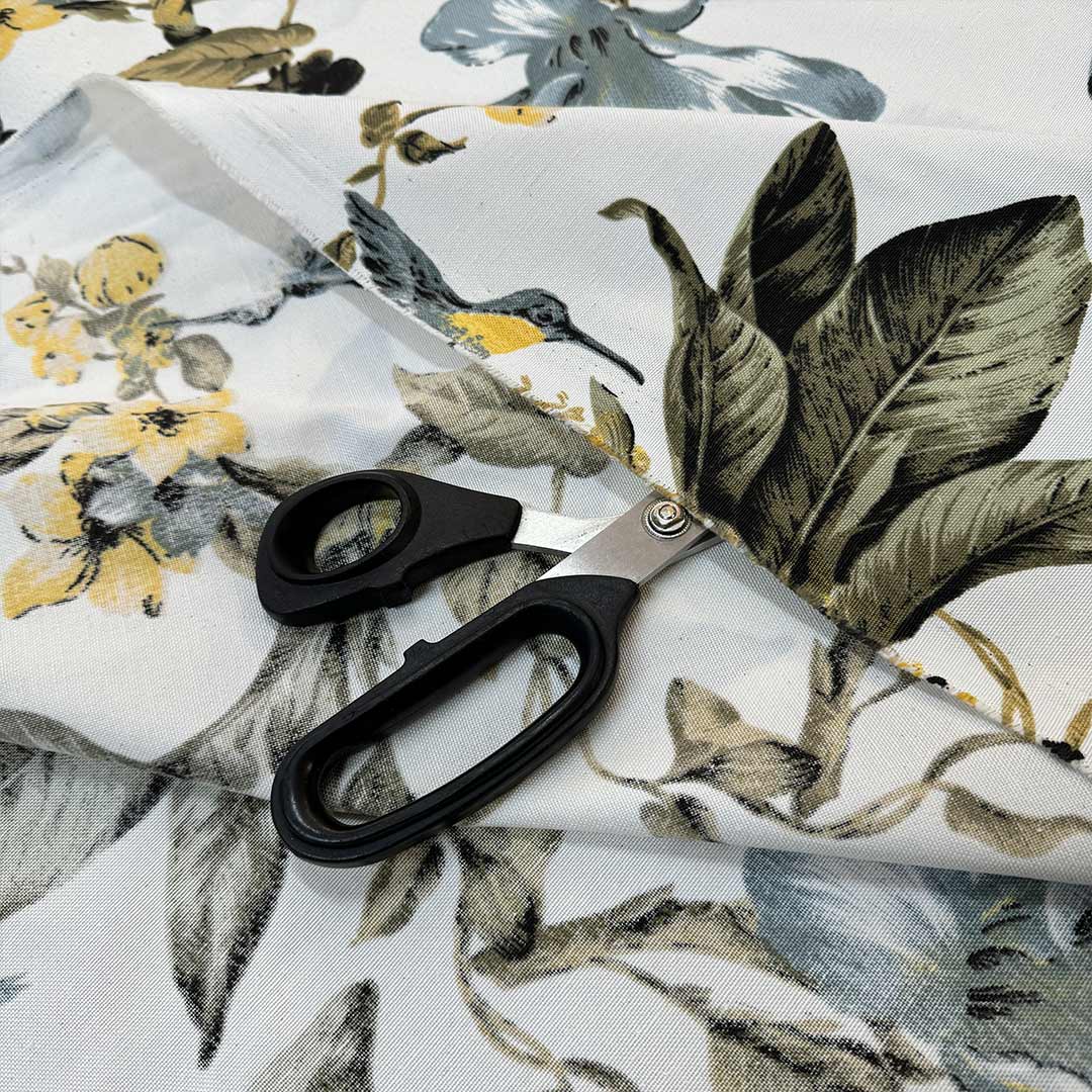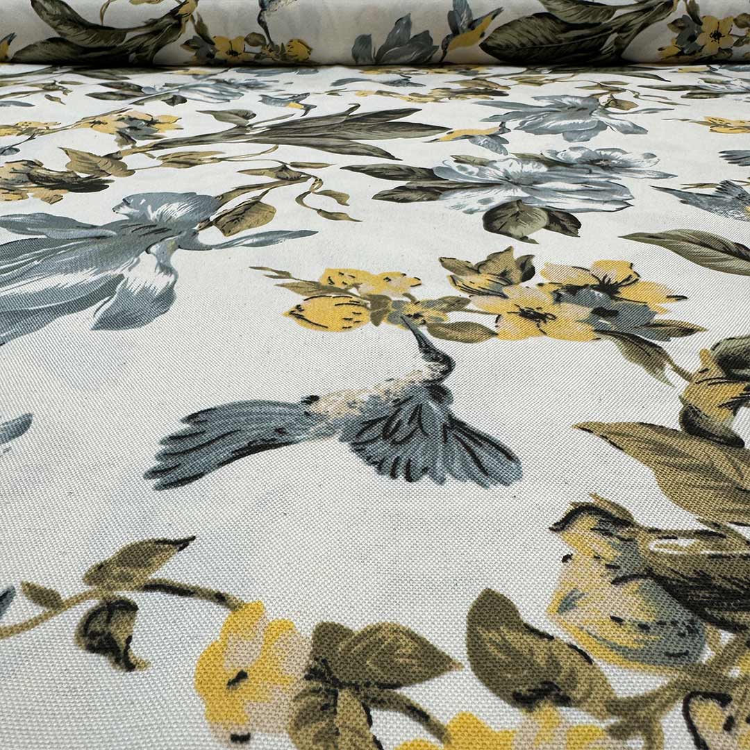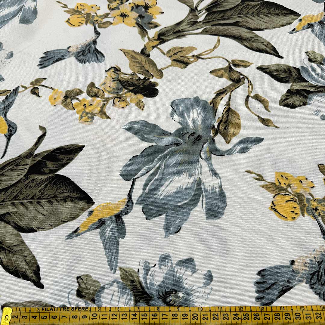 I colori freschi e la stampa vintage rendono il tessuto adatto a diverse situazioni, mentre la composizione in cotone assicura una piacevole sensazione al tatto e una versatilità nell’uso.