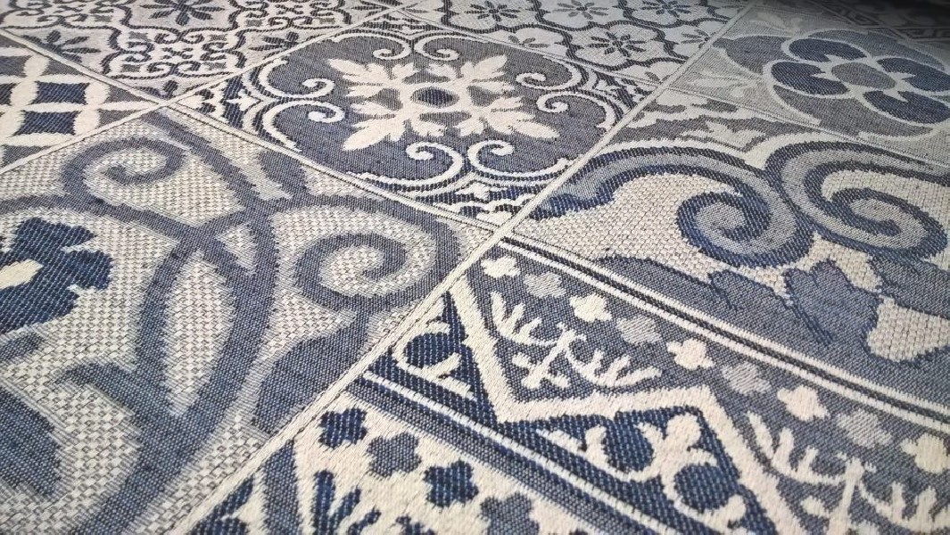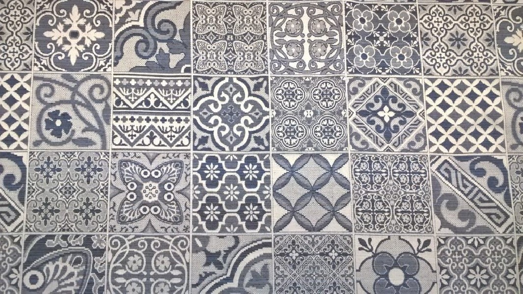Tessuto per arredo e rivestimento effetto maiolica – blu e bianco