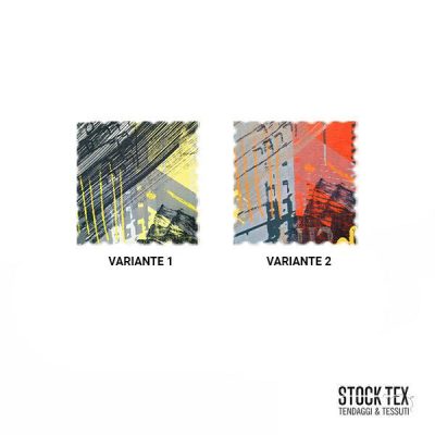 Fantasia con scritte, macchie e disegni in stile graffiti disponibile in due varianti colore.