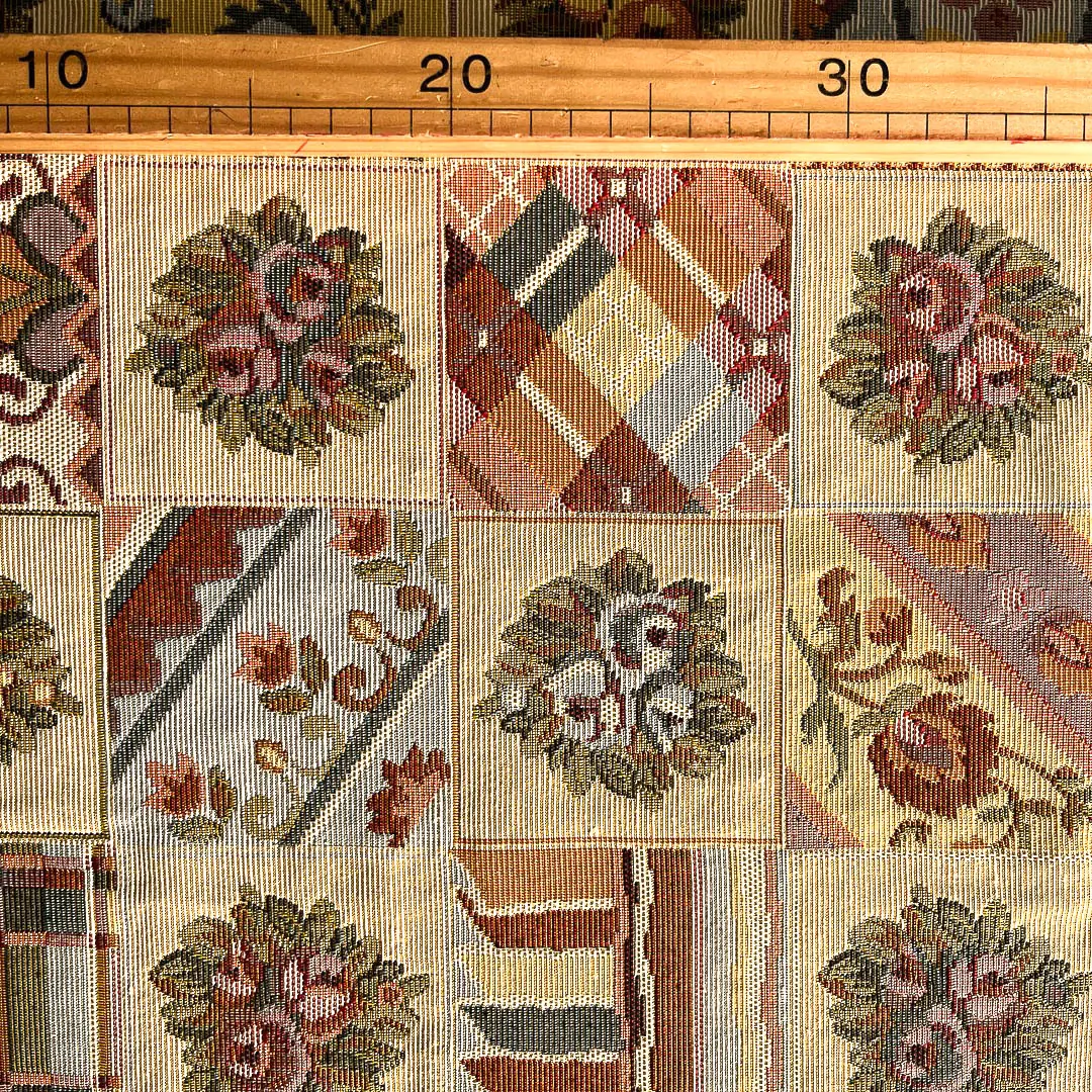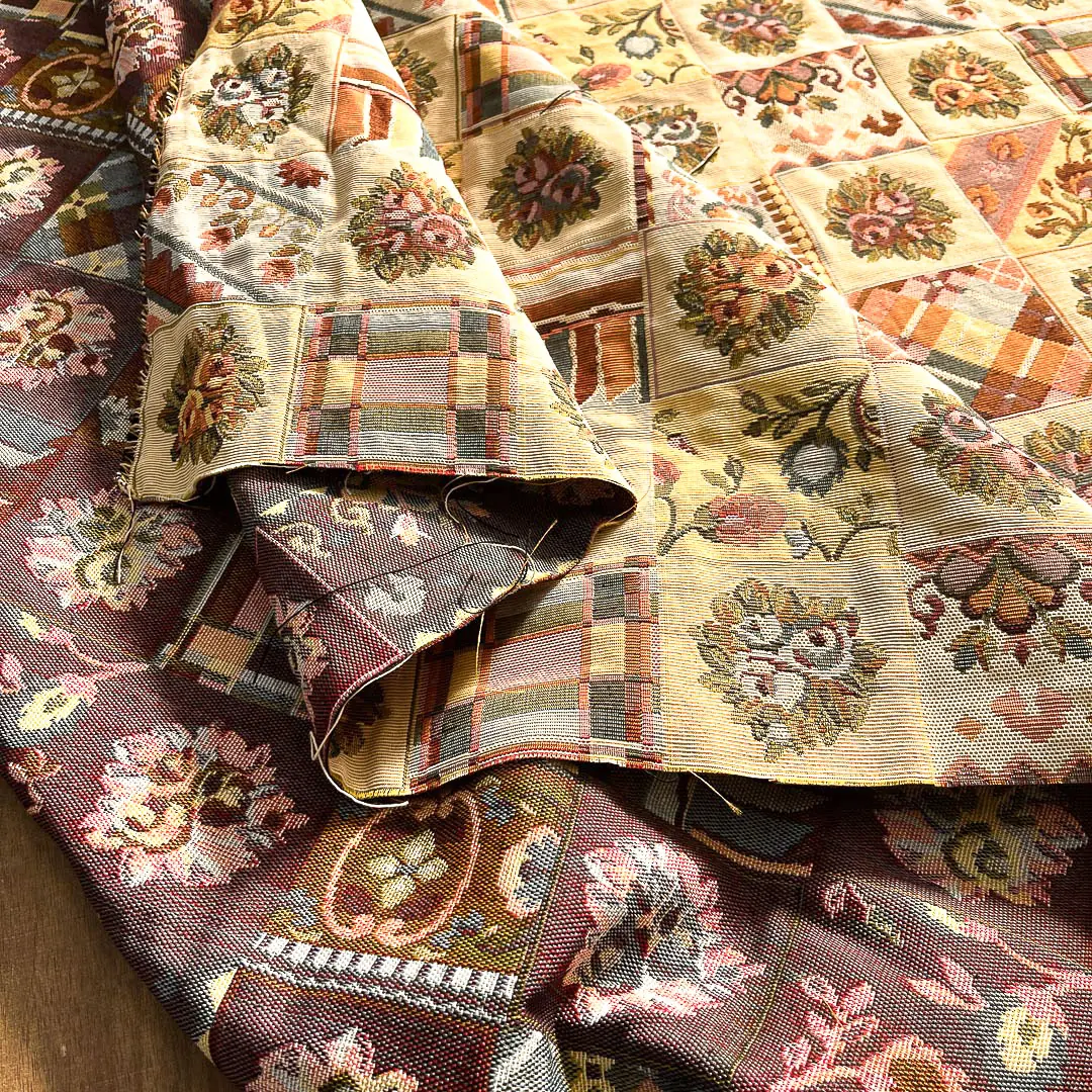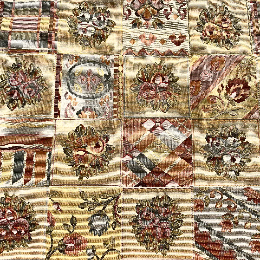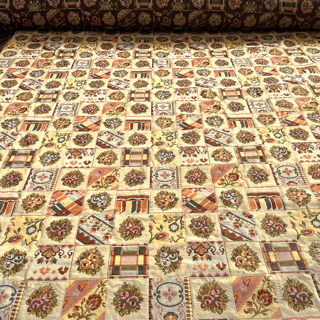 Tessuto Gobelin in Stile Rustico. Il tessuto ha colori caldi e avvolgenti quindi crea subito un’atmosfera casalinga.