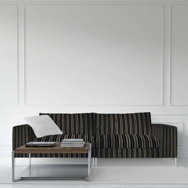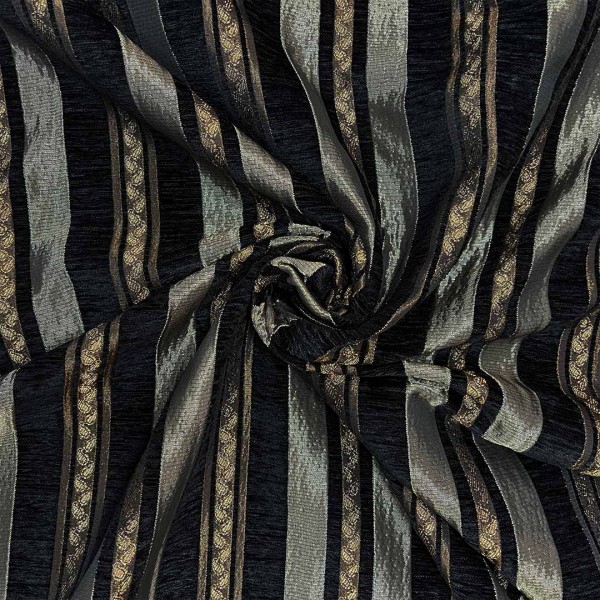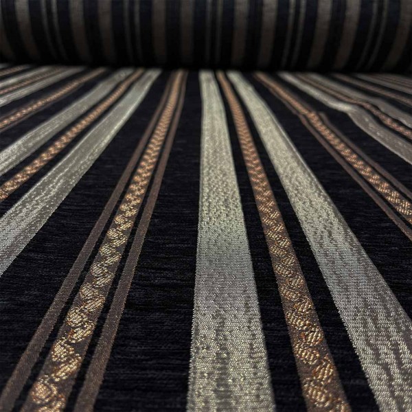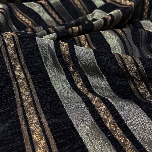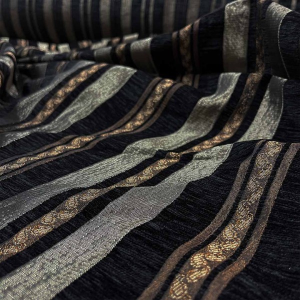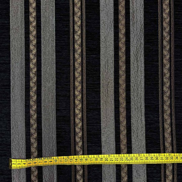 Tessuto per arredo e rivestimento con righe a motivo damascato – nero e tortora