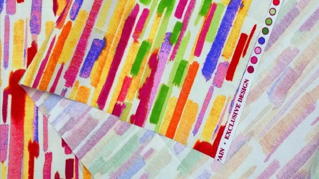Si presenta con pennellate di colori molto vivaci. Su fondo bianco naturale risaltano pennellate color rosa e corallo e verde . Per la sua resistenza è particolarmente adatto a rivestimenti di divani, poltrone e sedie. E’ anche perfetto per cuscini arredo e copriletti dal sapore etnico.