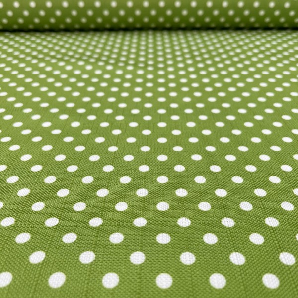 Tessuto da arredamento e tovaglie pois bianco su sfondo verde