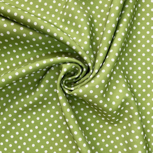 La tonalità verde mela del tessuto trasmette una sensazione di freschezza e vitalità, mentre i pois bianchi creano un effetto visivo divertente. Utilizza questo tessuto per dare vita al tuo arredamento e trasformare ogni giorno in una celebrazione della primavera.