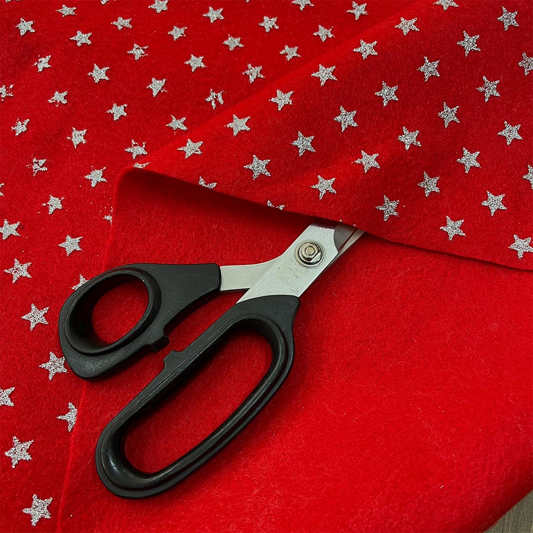 L’effetto visivo di questo tessuto è davvero eccezionale. Le stelle in glitter di 1,5 cm di diametro brillano e creano un’atmosfera magica e festosa.