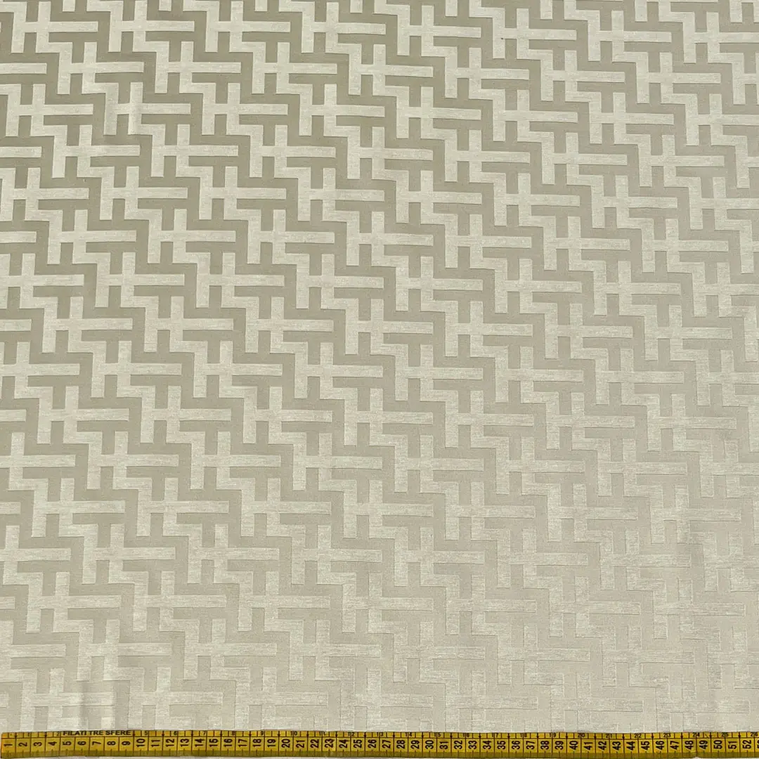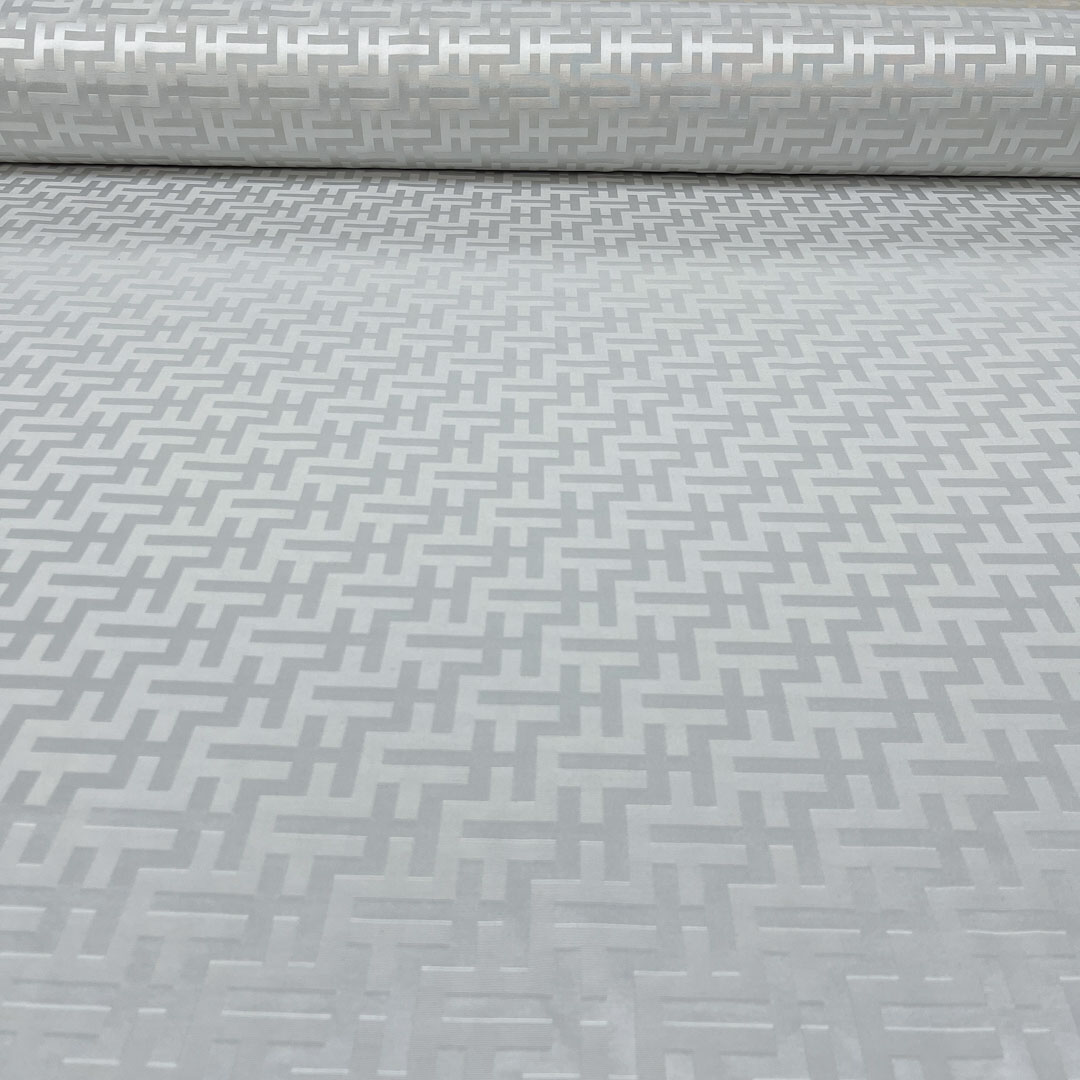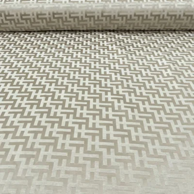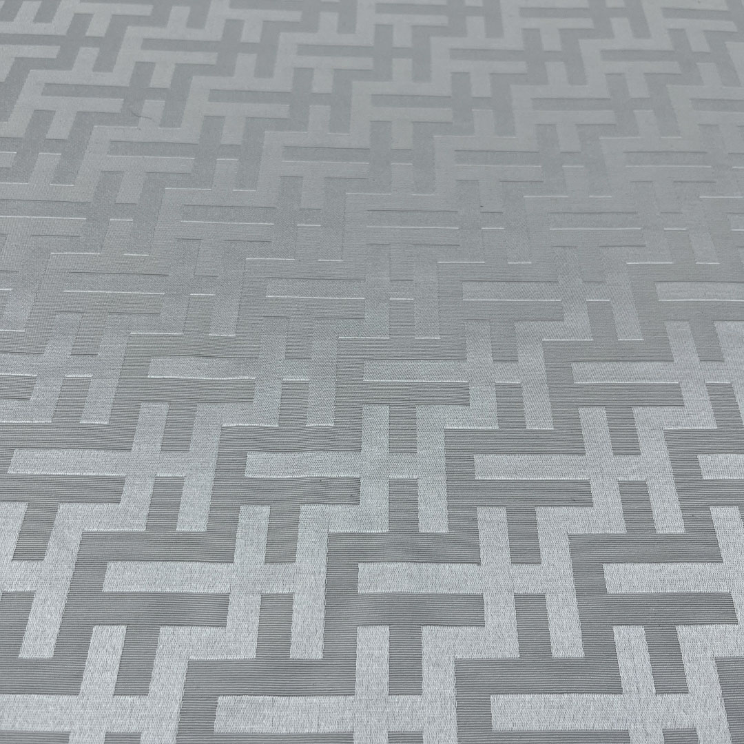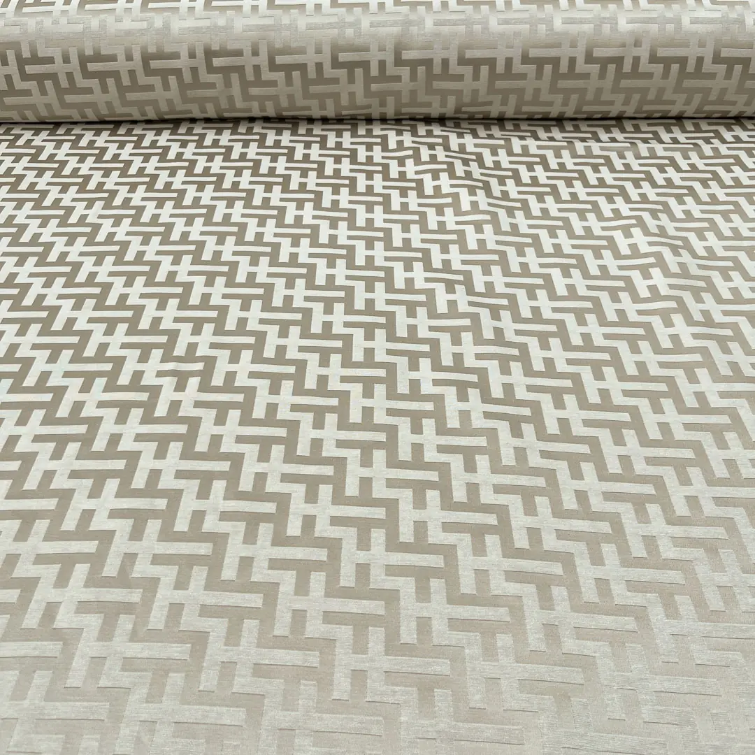 Raffinato tessuto jacquard caratterizzato da una moderna fantasia geometrica a intrecci, ideale per valorizzare ambienti contemporanei ed eleganti. La lavorazione jacquard dona al tessuto un effetto tridimensionale e una lucentezza sofisticata, perfetta per tovaglie di pregio, tendaggi o complementi d’arredo come cuscini e rivestimenti.