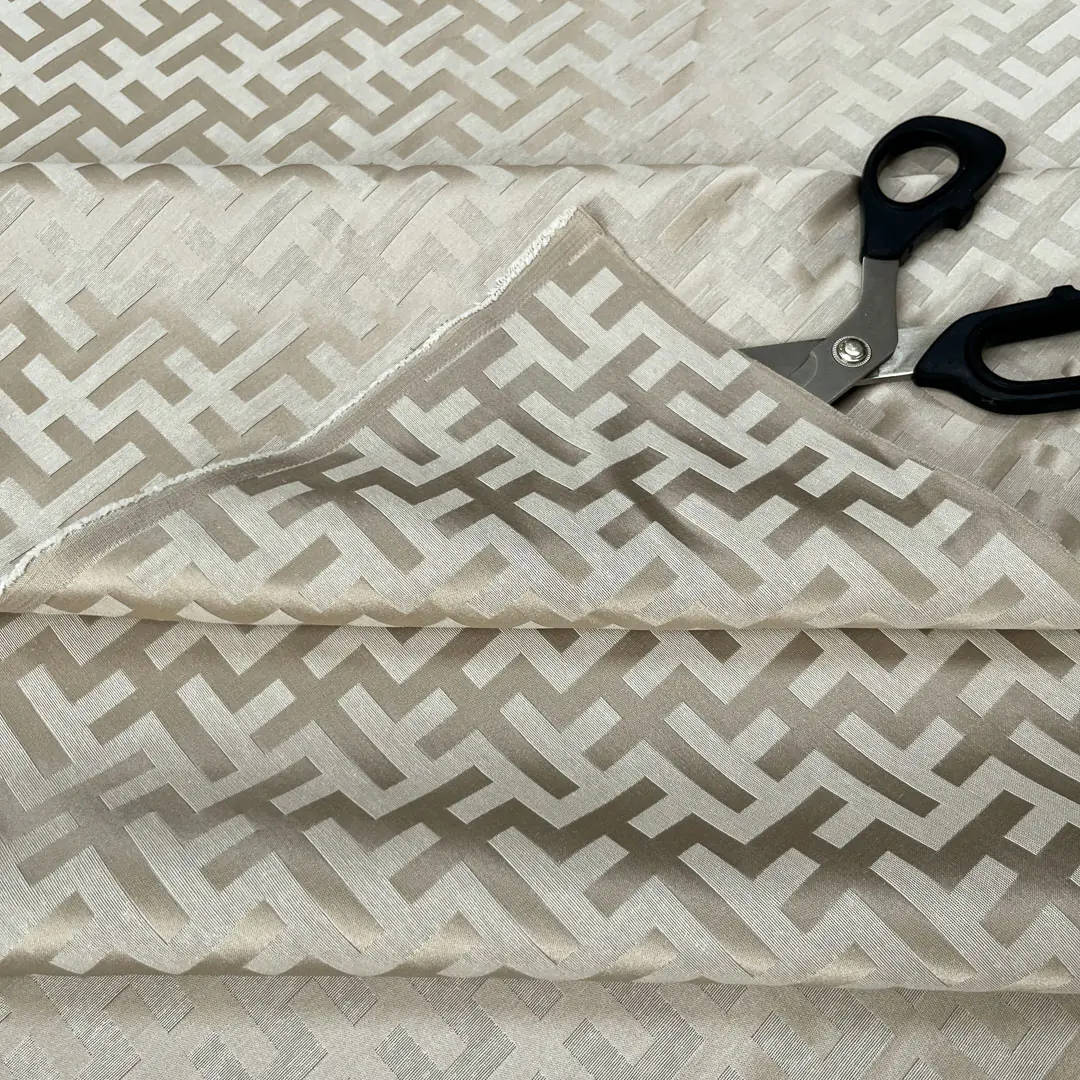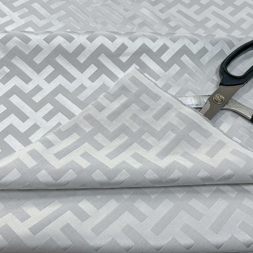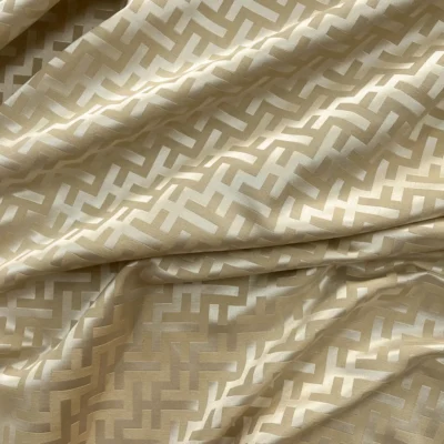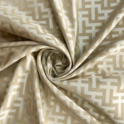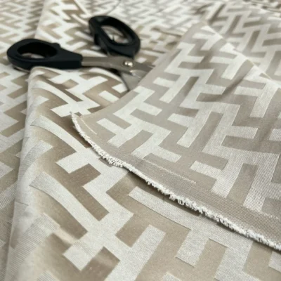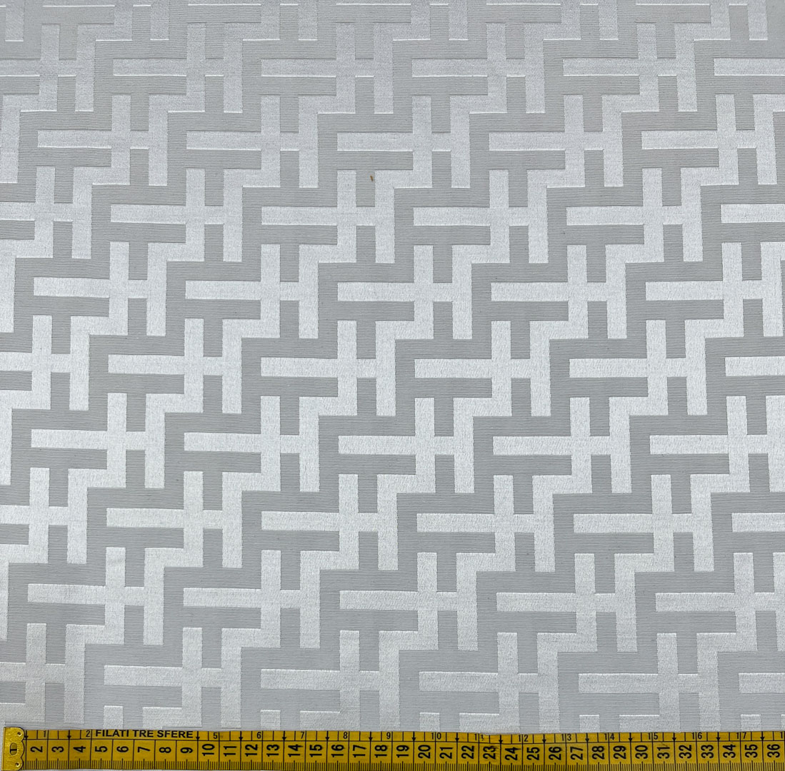 Raffinato tessuto jacquard caratterizzato da una moderna fantasia geometrica a intrecci, ideale per valorizzare ambienti contemporanei ed eleganti. La lavorazione jacquard dona al tessuto un effetto tridimensionale e una lucentezza sofisticata, perfetta per tovaglie di pregio, tendaggi o complementi d’arredo come cuscini e rivestimenti.