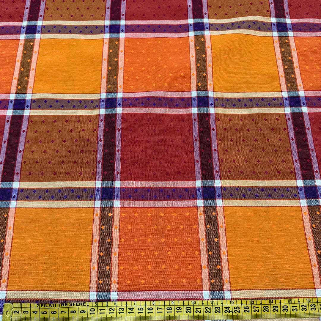 Tessuto multiuso a quadrettoni colori caldi separati da righe scure