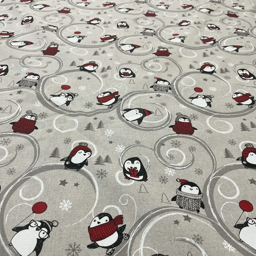 Tessuto per tovagliato natalizio con pinguini – multicolor.