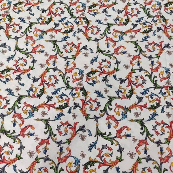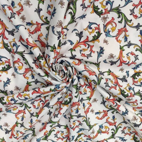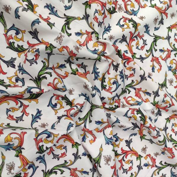 Su uno sfondo bianco si estende un motivo floreale in stile Barocco.