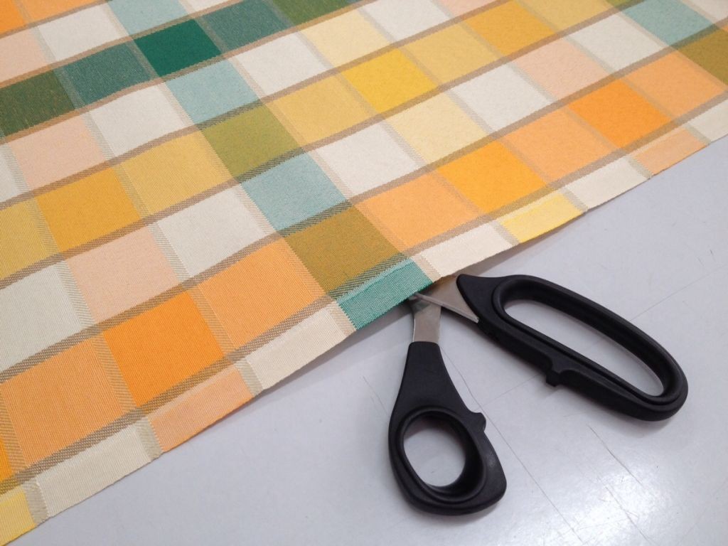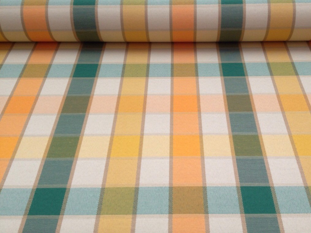 Tessuto a quadretti verdi, arancioni e beige