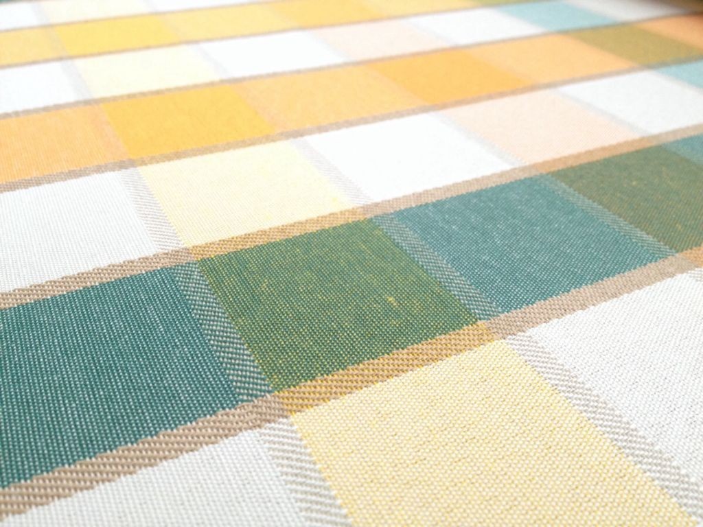 Tessuto per tovaglie in cotone resinato a quadretti – verde arancione e beige