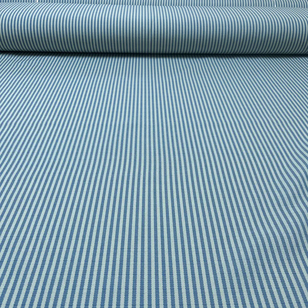 Tessuto per tovaglie Misto Cotone a righe blu polvere su sfondo bianco naturale – Alt.280 cm