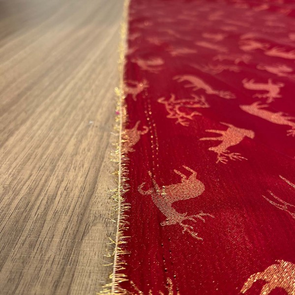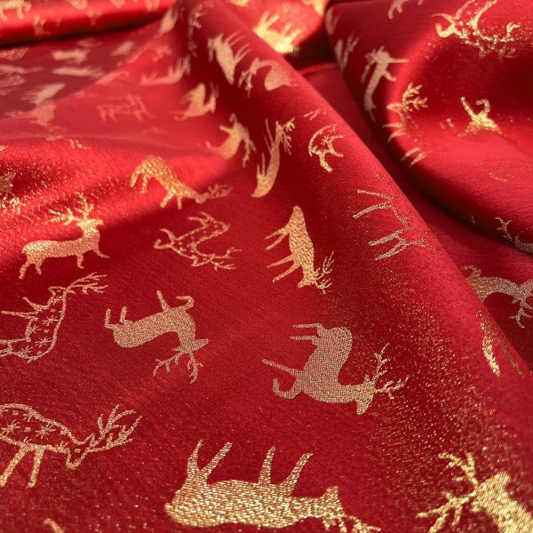 Splendido tessuto natalizio caratterizzato da una fantasia ispirata al magico mondo del Natale: una cascata di renne sfavillanti pronte ad aggiungere poesia alla festività più attesa dell’anno!
