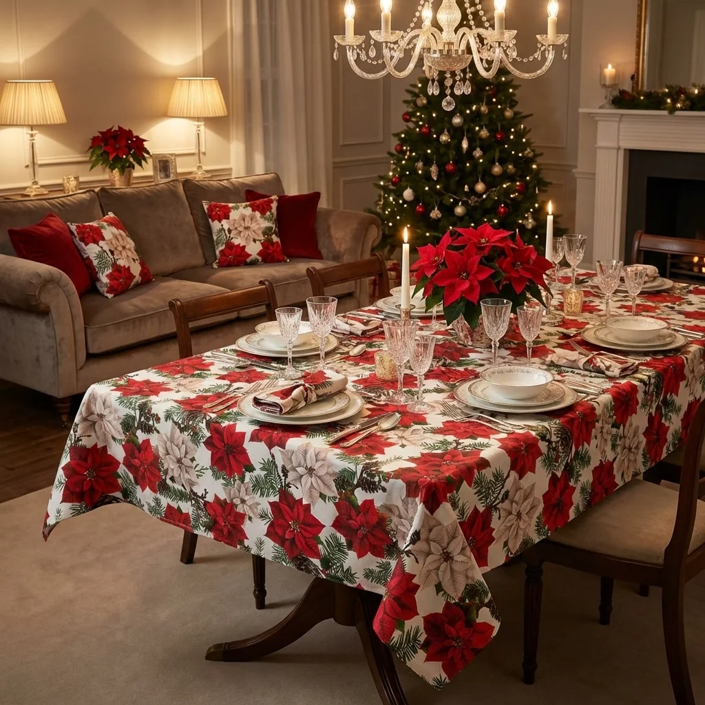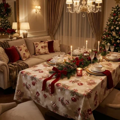 La struttura del tessuto è pensata per resistere a sfregamenti, macchie e pieghe, risultando adatta sia all’uso domestico che in ristoranti, agriturismi, mense e sale eventi che desiderano un coordinato natalizio pratico ma d’effetto.