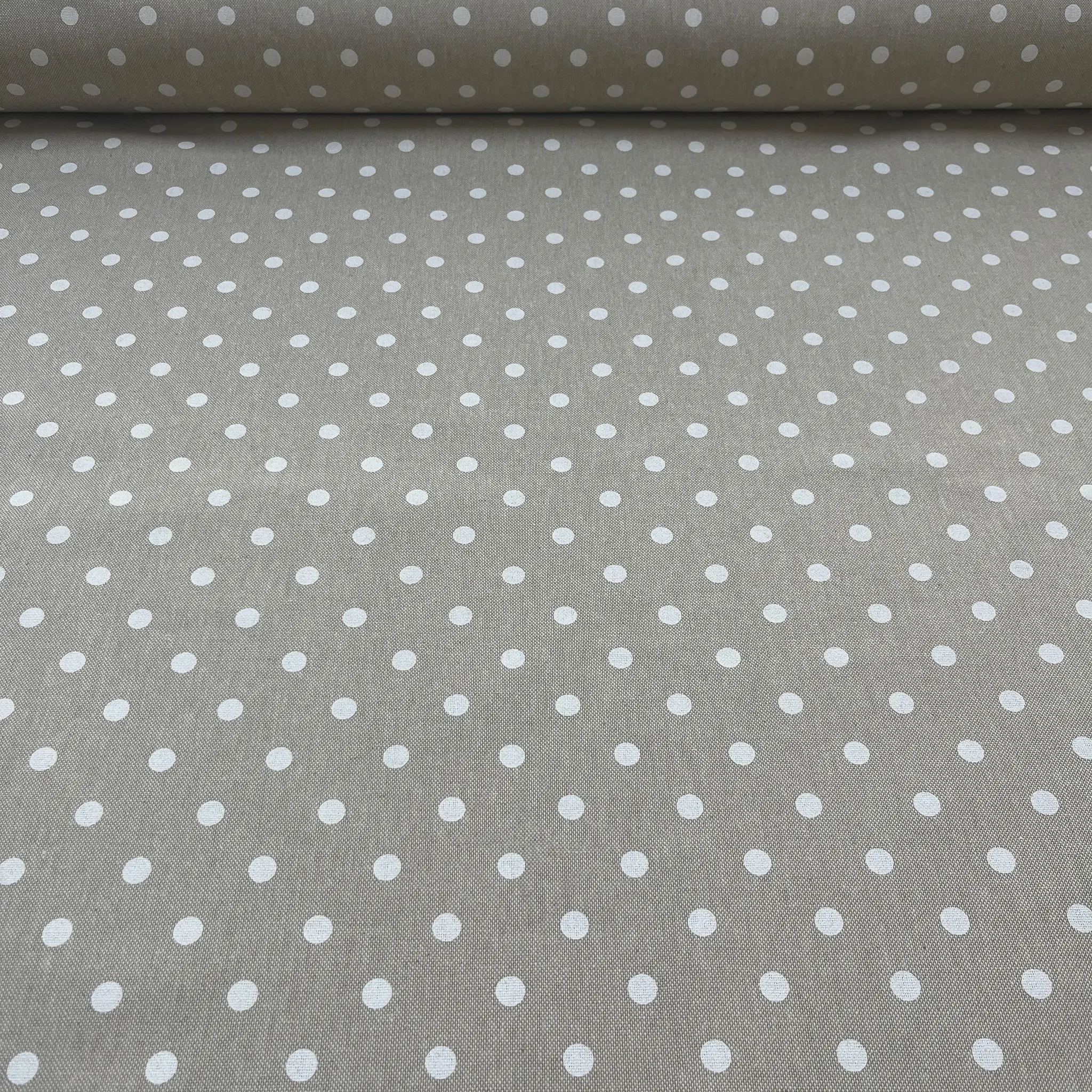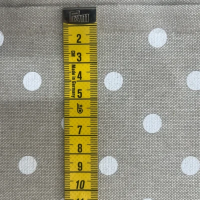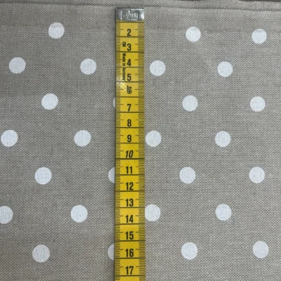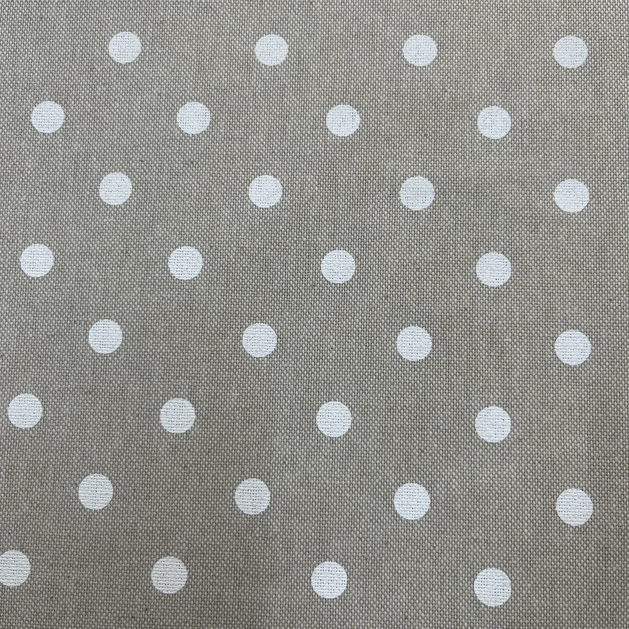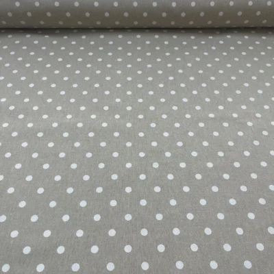 Tessuto tovaglia tortora con pois bianchi regolari