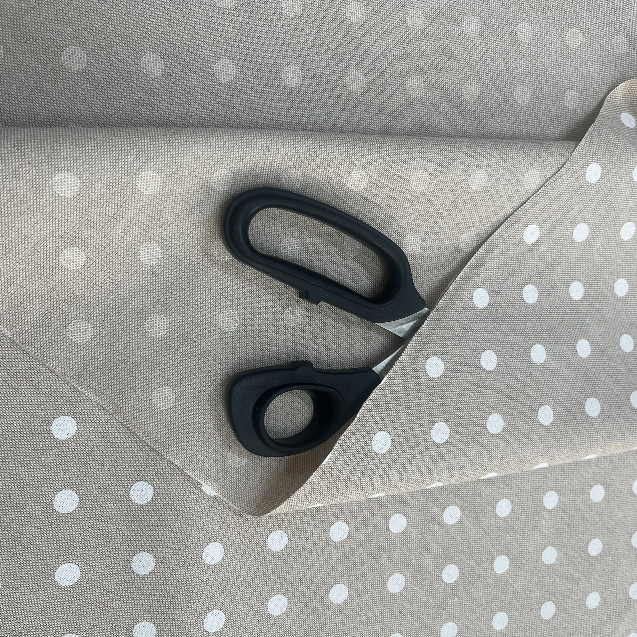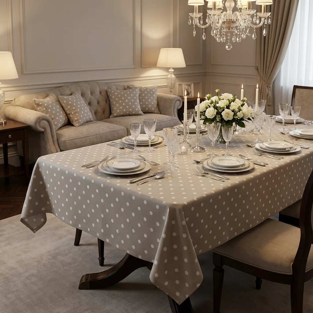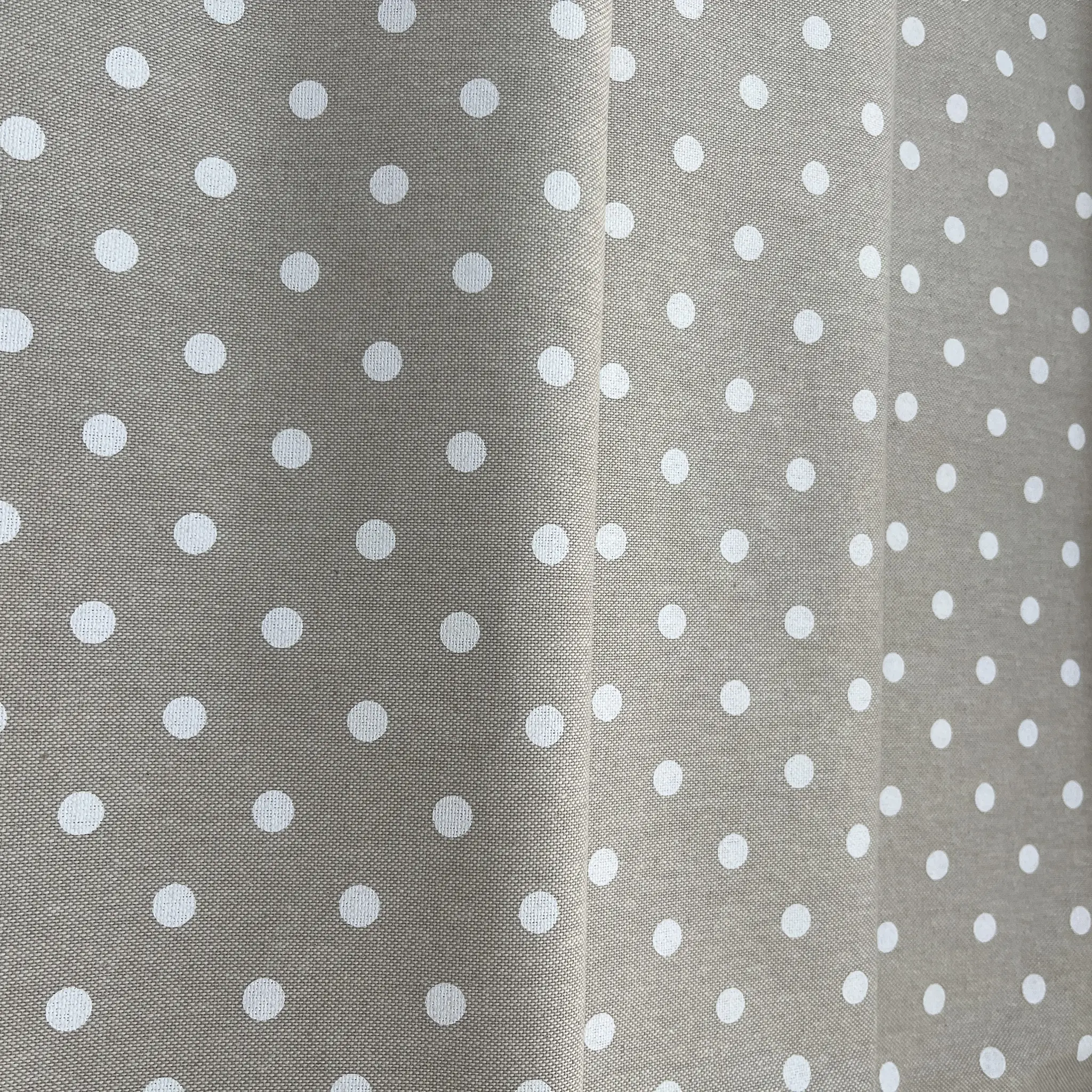 Tessuto tovaglia tortora con pois bianchi regolari