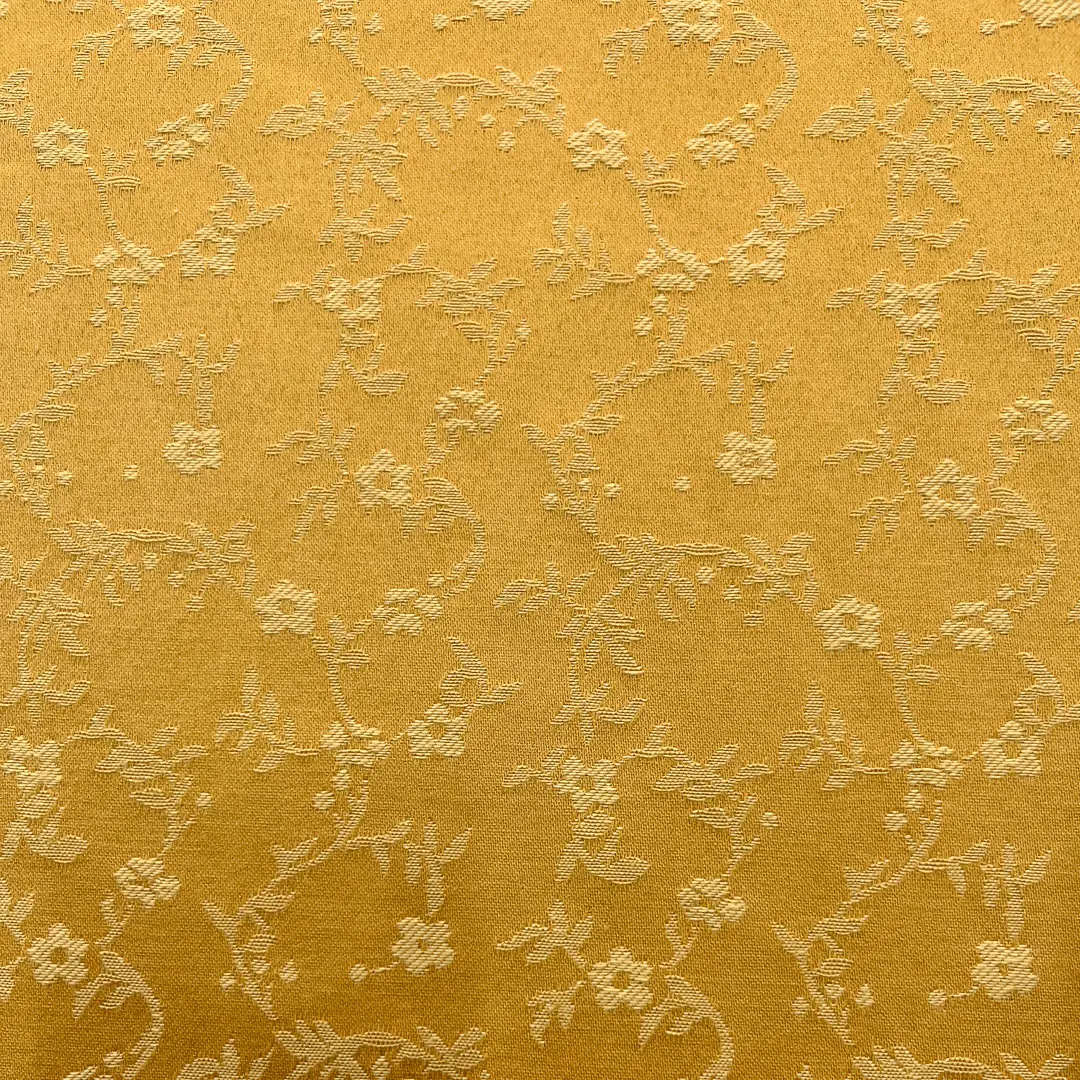 Il motivo decorativo è composto da un delicato disegno floreale tessuto direttamente nella struttura del tessuto, con elementi leggermente più chiari che creano un effetto di rilievo sofisticato.